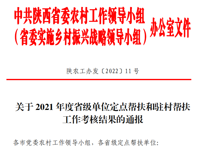喜報!神木煤化工公司被評定為2021年度省級單位定點幫扶工作“好”等次