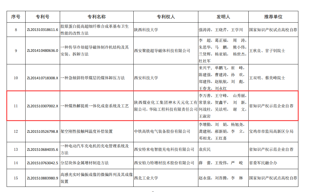 陜煤集團網站:神木煤化工公司兩項發明專利榮獲2021年度“陜西省專利獎”一等獎