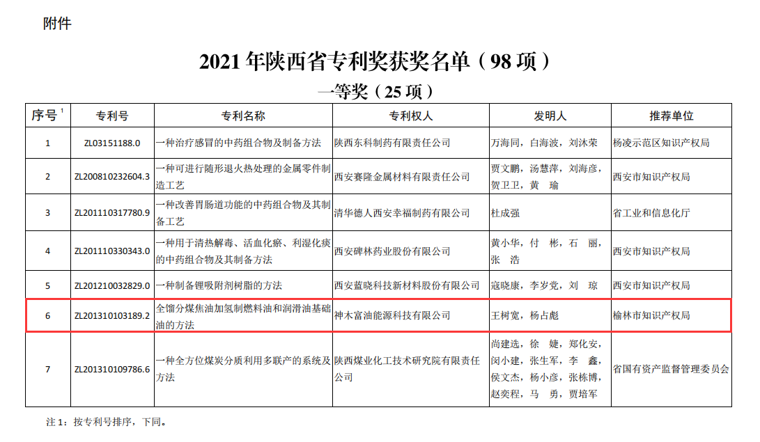 6月30日,從陜西省知識產權局獲悉,神木煤化工公司所屬富油公司、天元公司申報的“全餾分煤焦油加氫制燃料油和潤滑油基礎油的方法”和“一種煤熱解提質一體化成套系統及工藝”兩項發明專利榮獲“陜西省專利獎”一等獎。