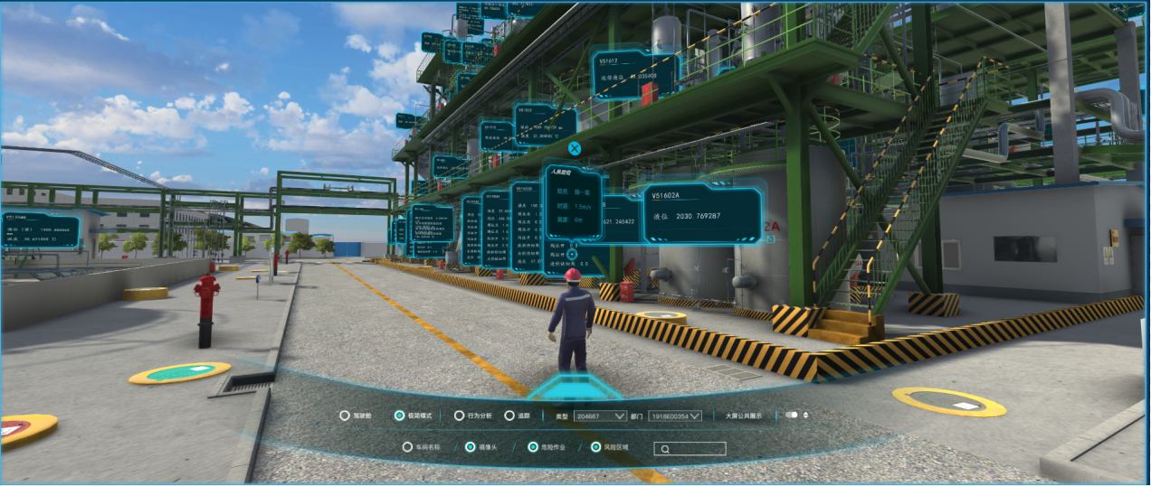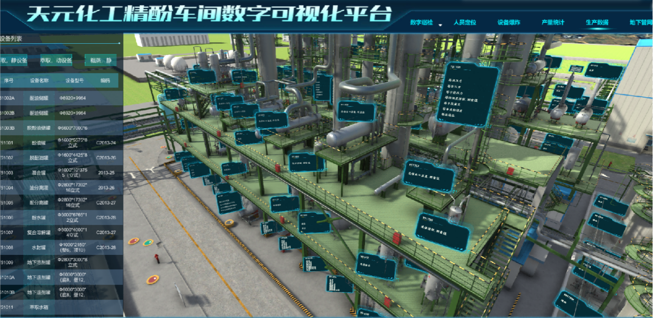 數(shù)字孿生項(xiàng)目實(shí)現(xiàn)了與現(xiàn)場裝置1:1三維立體建模的數(shù)字化,三維模型包含所有的PID圖、設(shè)備參數(shù)及供應(yīng)商信息,通過引入DCS等系統(tǒng)的動態(tài)數(shù)據(jù)和人員三維定位,實(shí)現(xiàn)了車間物理實(shí)體裝置高精度的虛擬模型展示,解決了生產(chǎn)系統(tǒng)內(nèi)外操作人員協(xié)同作業(yè)困難,大幅提升了一線員工的作業(yè)質(zhì)量和工作效率。