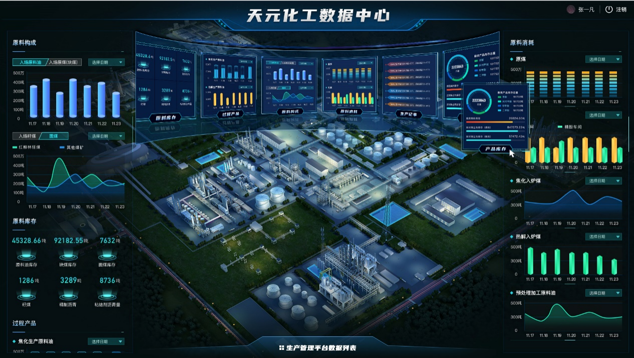 其中,數(shù)據(jù)中心項(xiàng)目通過對公司生產(chǎn)經(jīng)營數(shù)據(jù)的挖掘與分析,建立的應(yīng)用模型直觀展示了當(dāng)前的生產(chǎn)經(jīng)營狀態(tài)。目前,共有生產(chǎn)、銷售、采購、價格、環(huán)保等8個數(shù)據(jù)平臺,通過數(shù)據(jù)中心可以及時了解到公司的生產(chǎn)經(jīng)營現(xiàn)狀,為企業(yè)經(jīng)營決策提供可靠的數(shù)據(jù)支持。