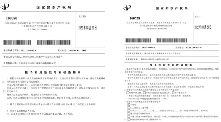 近日,天元公司申請的“針狀焦原料油品中喹啉不溶物脫除裝置”實用新型專利和“煤焦油中酚類化合物的分離方法”發明專利獲得國家知識產權局授權。至此,天元公司專利授權量達到111件,其中發明專利38件。
