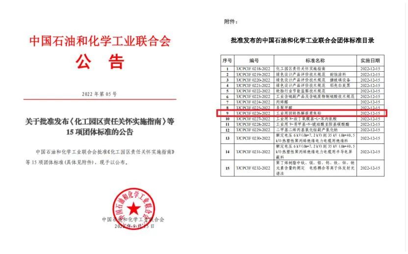 該標(biāo)準(zhǔn)于2020年3月獲得中國石油和化學(xué)工業(yè)聯(lián)合會立項(xiàng)。按照《中國石油和化學(xué)工業(yè)聯(lián)合會團(tuán)體標(biāo)準(zhǔn)管理辦法》,作為牽頭單位,天元公司承擔(dān)標(biāo)準(zhǔn)的具體研制任務(wù)。標(biāo)準(zhǔn)研制期間,標(biāo)準(zhǔn)工作組前往相關(guān)生產(chǎn)企業(yè)走訪調(diào)研,并積極與研究機(jī)構(gòu)、下游客戶交流溝通,確保標(biāo)準(zhǔn)如期研制完成。最終,經(jīng)過基層調(diào)研、起草方案、征求意見、技術(shù)審查、標(biāo)準(zhǔn)報(bào)批等階段,該標(biāo)準(zhǔn)于2022年9月15日獲批發(fā)布,將于12月15日開始實(shí)施。