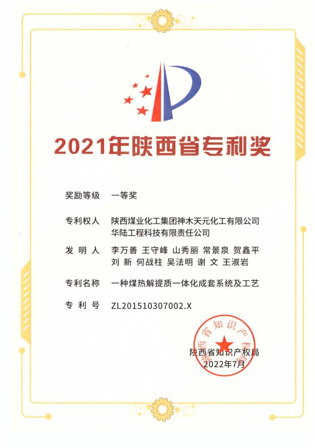 近日,從陜西省知識產(chǎn)權(quán)局獲悉,神木煤化工天元公司“一種煤熱解提質(zhì)一體化成套系統(tǒng)及工藝”發(fā)明專利榮獲2021年陜西省專利獎一等獎。