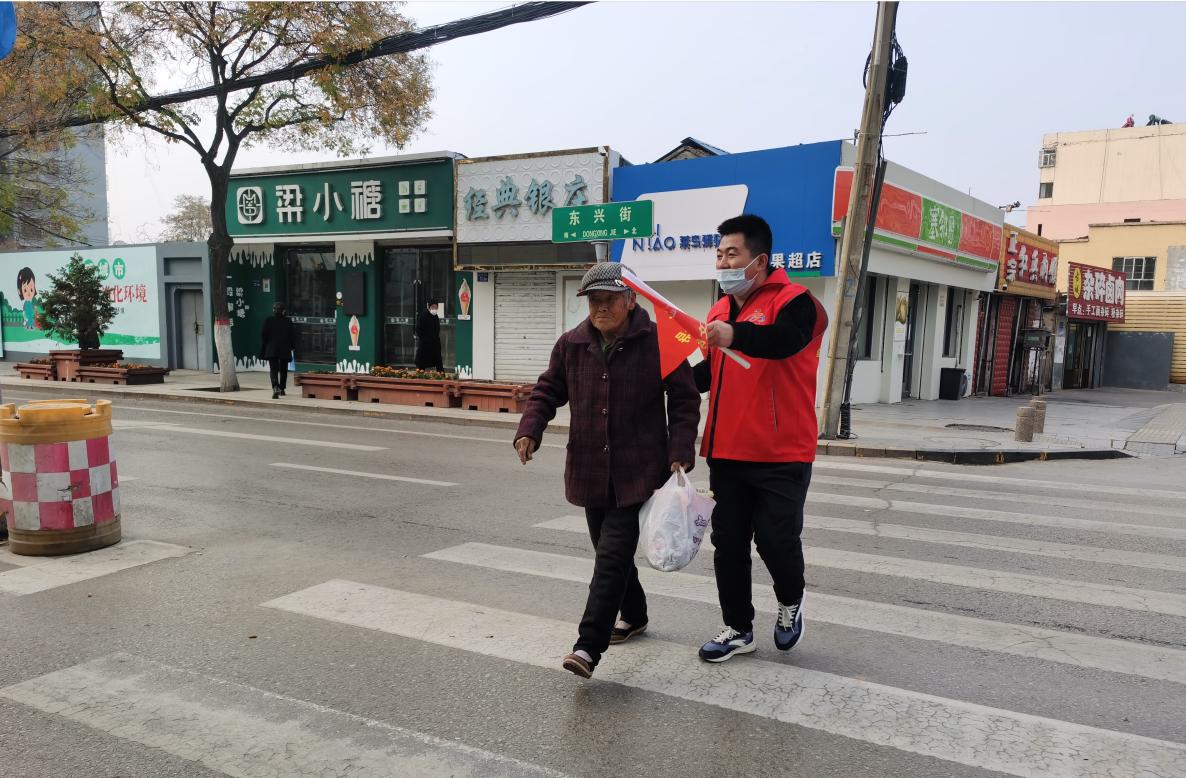 “大爺,現(xiàn)在是紅燈,您等會兒,我扶您過去。”“老奶奶,現(xiàn)在有很多車,等會我推著您走人行道。”“謝謝你,小伙子!”正值下班放學(xué)高峰期,神木市東興街古城北路十字路口車輛行人川流不息,在斑馬線兩側(cè)值守的志愿者們早已投入了志愿服務(wù)活動中。