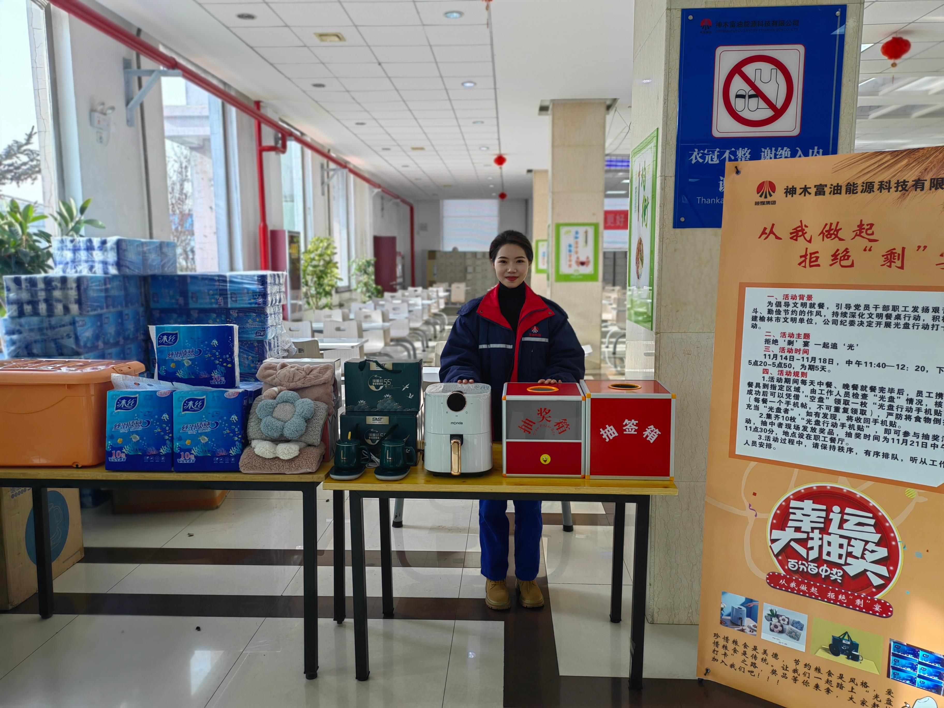 “我已經連續5天光盤,獲得了紅、橙、藍、綠、紫五種顏色卡共10張,希望能抽到大獎。”抽獎現場的一名青年員工說。“果然有大獎,今天抽到了老婆心心念的空氣炸鍋,真開心啊!在今后的工作和生活中,我將用自身的實際行動帶動我周圍的同事、還有我的家人杜絕舌尖上的浪費。”保運中心蘇永紅開心的說。