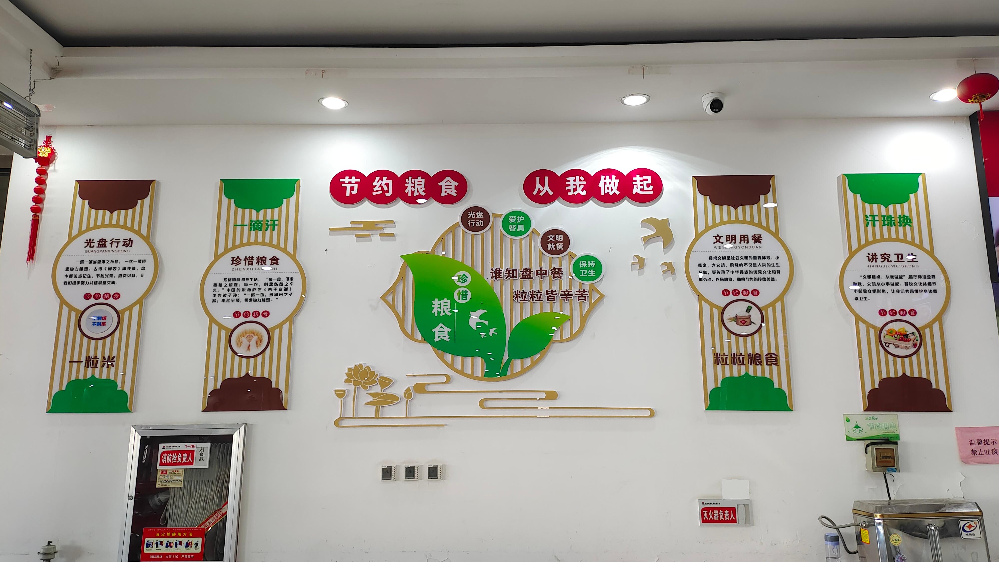 走進能源公司職工餐廳,首先映入眼簾的是食堂四周墻壁上布設的“珍惜糧食”“文明用餐”“光盤行動”“講究衛生”主題文化墻和橫幅。同時,能源公司還將“文明用餐”“光盤行動”等主題制作成易拉寶宣傳展板和桌牌,擺放在干部職工打飯就餐必經通道,隨時隨處提醒職工養成節約習慣,制止餐飲浪費。能源公司將厲行節約反對浪費的標識標語上墻上桌,打造了一個以節約糧食為核心思想的食堂文化。