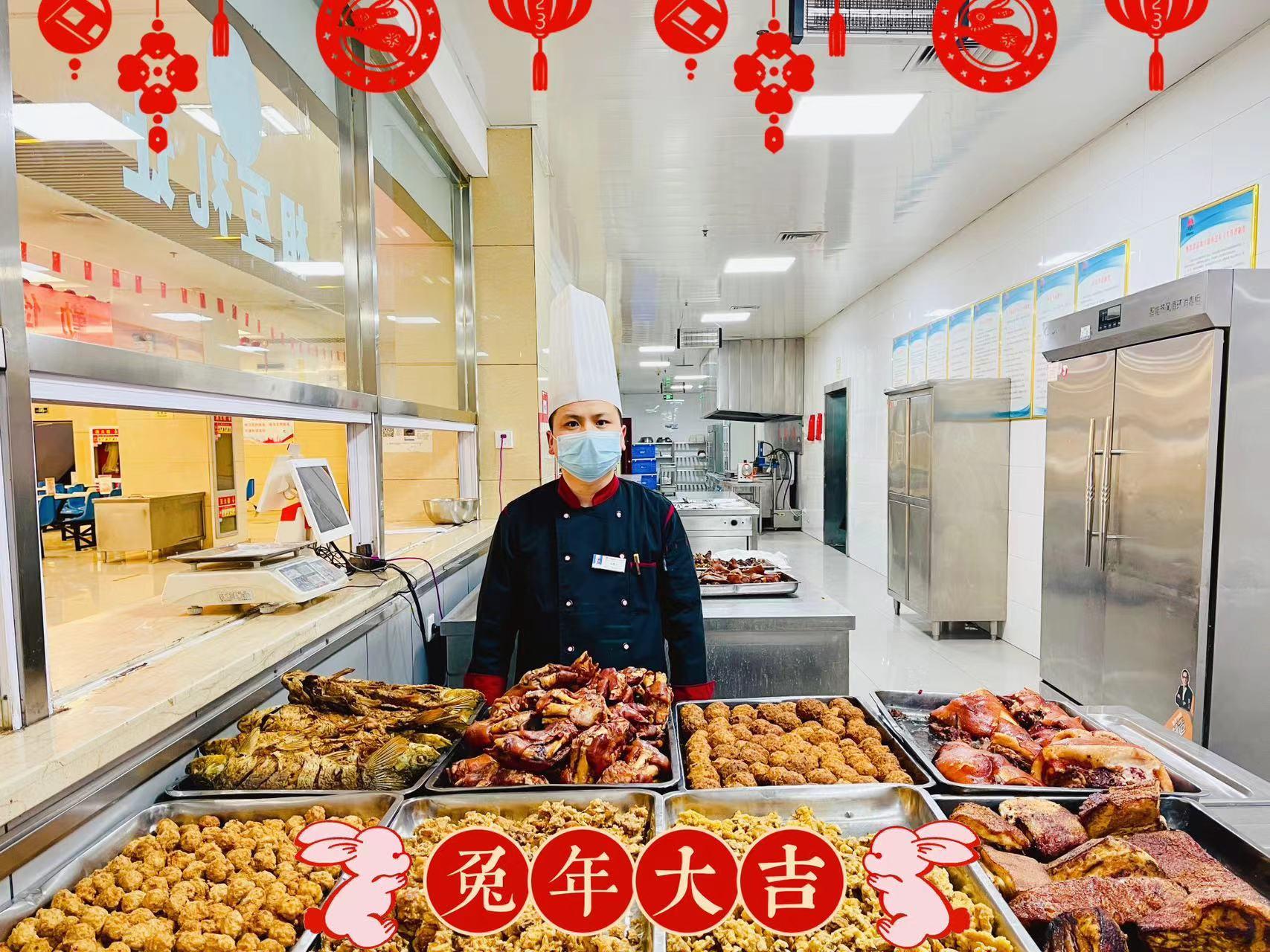 食堂工作人員在為職工準(zhǔn)備免費(fèi)年夜飯