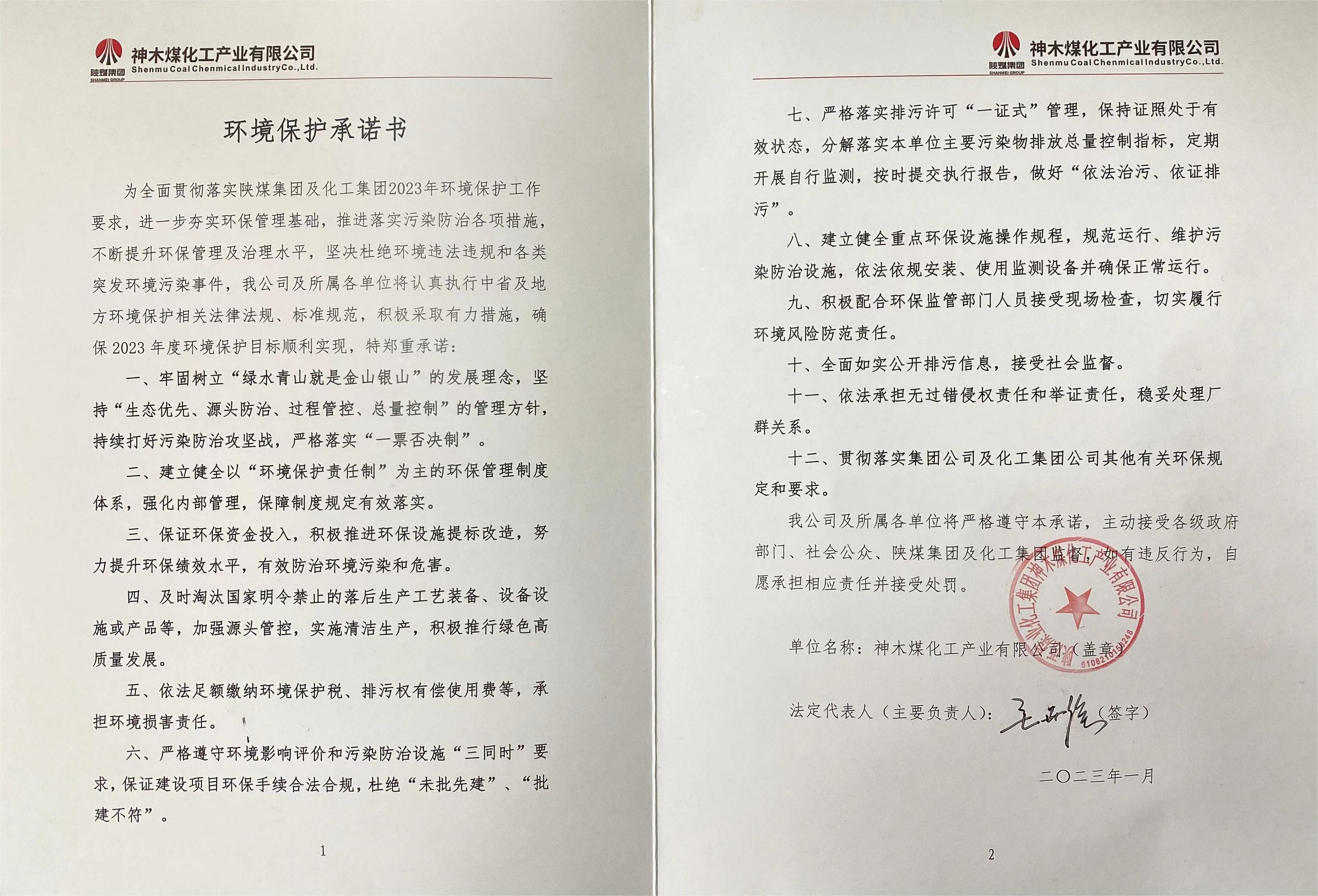 神木煤化工產業有限公司2023年環境保護承諾書公示