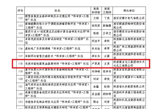 近日,陜西省科學技術廳公布了2023年度秦創(chuàng)原“科學家+工程師”隊伍入選名單,神木煤化工天元公司先進功能性煤焦油基新材料“科學家+工程師”隊伍成功入選。