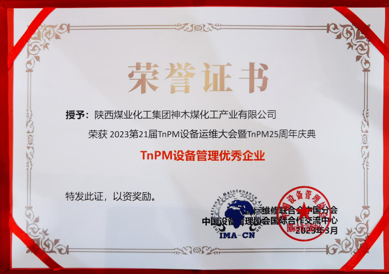 3月2日,由國際維修聯合會中國分會(IMA-CN)、中國設備管理協會國際合作交流中心聯合主辦的第二十一屆TnPM 設備運維大會暨TnPM25周年慶典在廣州隆重舉行。大會以“數?智賦能,奮進新征程”為主題,多維度、多視角地解讀當今設備管理前沿理論與實踐成果,以及最新智能化科技研究與應用,為全國裝備制造企業搭建起智能運維發展的重要窗口和行業共商發展大計、共享最新成果的平臺。大會表彰了TnPM設備管理優秀企業、TnPM卓越班組等多項大獎。神木煤化工公司榮獲第21屆TnPM設備運維大會“TnPM設備管理優秀企業”。