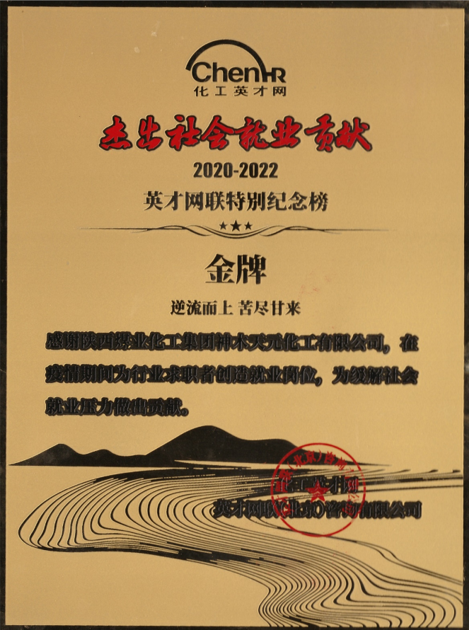 近日,神木煤化工天元公司在由英才網聯主辦的第七屆“中國好雇主”評選活動中脫穎而出,榮獲“杰出社會就業貢獻金牌”稱號。