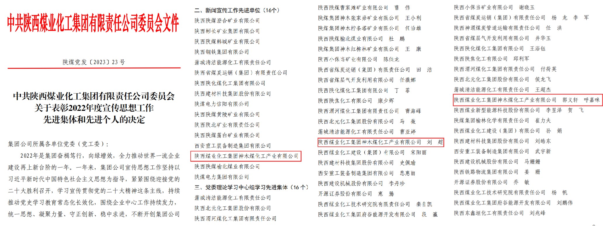 會(huì)上,神木煤化工公司榮獲集團(tuán)公司2022年度“新聞宣傳工作先進(jìn)單位”;天元公司劉超被評(píng)為集團(tuán)公司2022年度“宣傳思想工作先進(jìn)個(gè)人”;能源公司郭義軒和電化公司呼嘉咪分別被評(píng)為集團(tuán)公司2022年度“優(yōu)秀通訊員”。