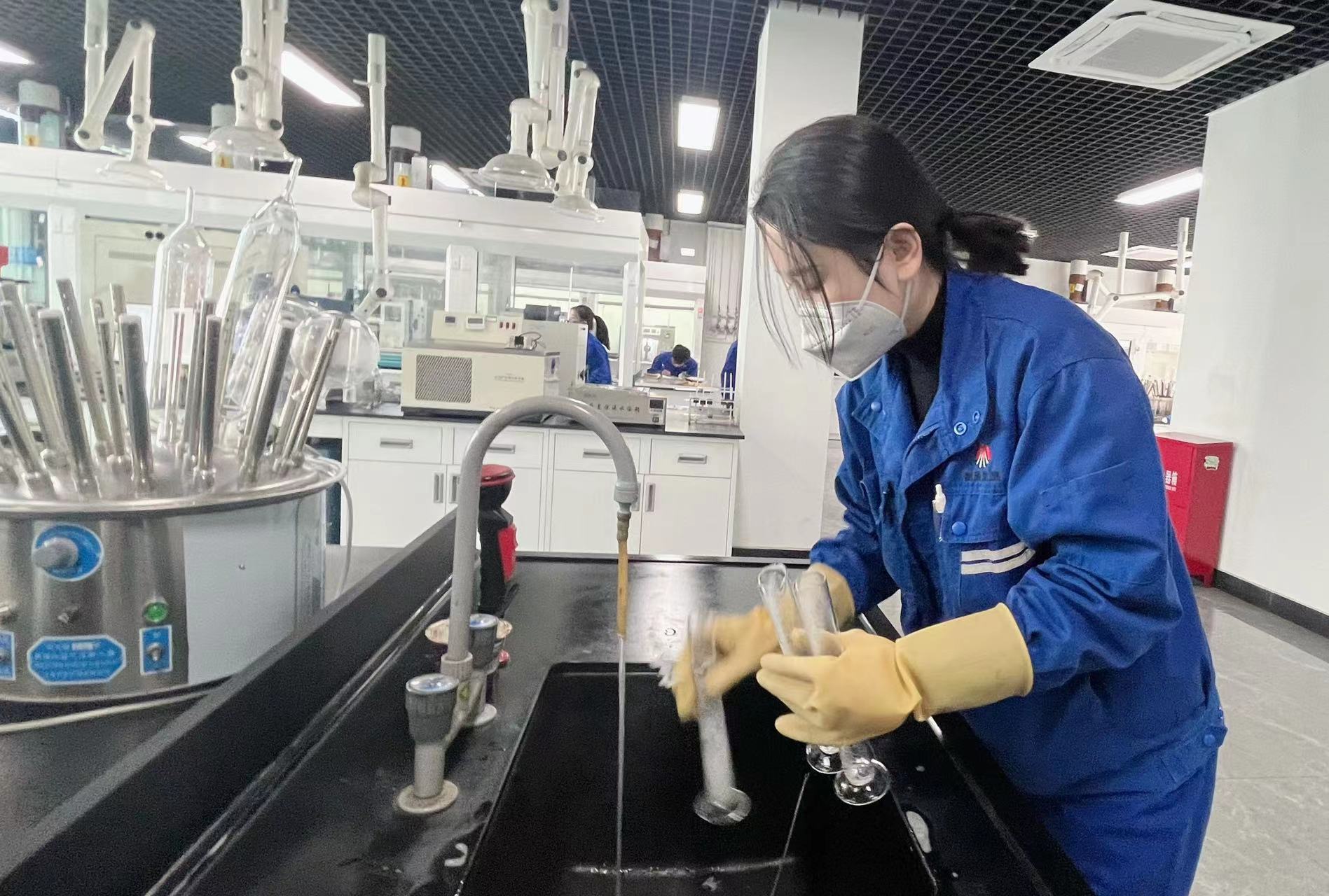 富油公司質量檢驗監督部化驗工王雪:她用勤勞的雙手,清洗著一個儀器,展現出新時代女職工的風采。