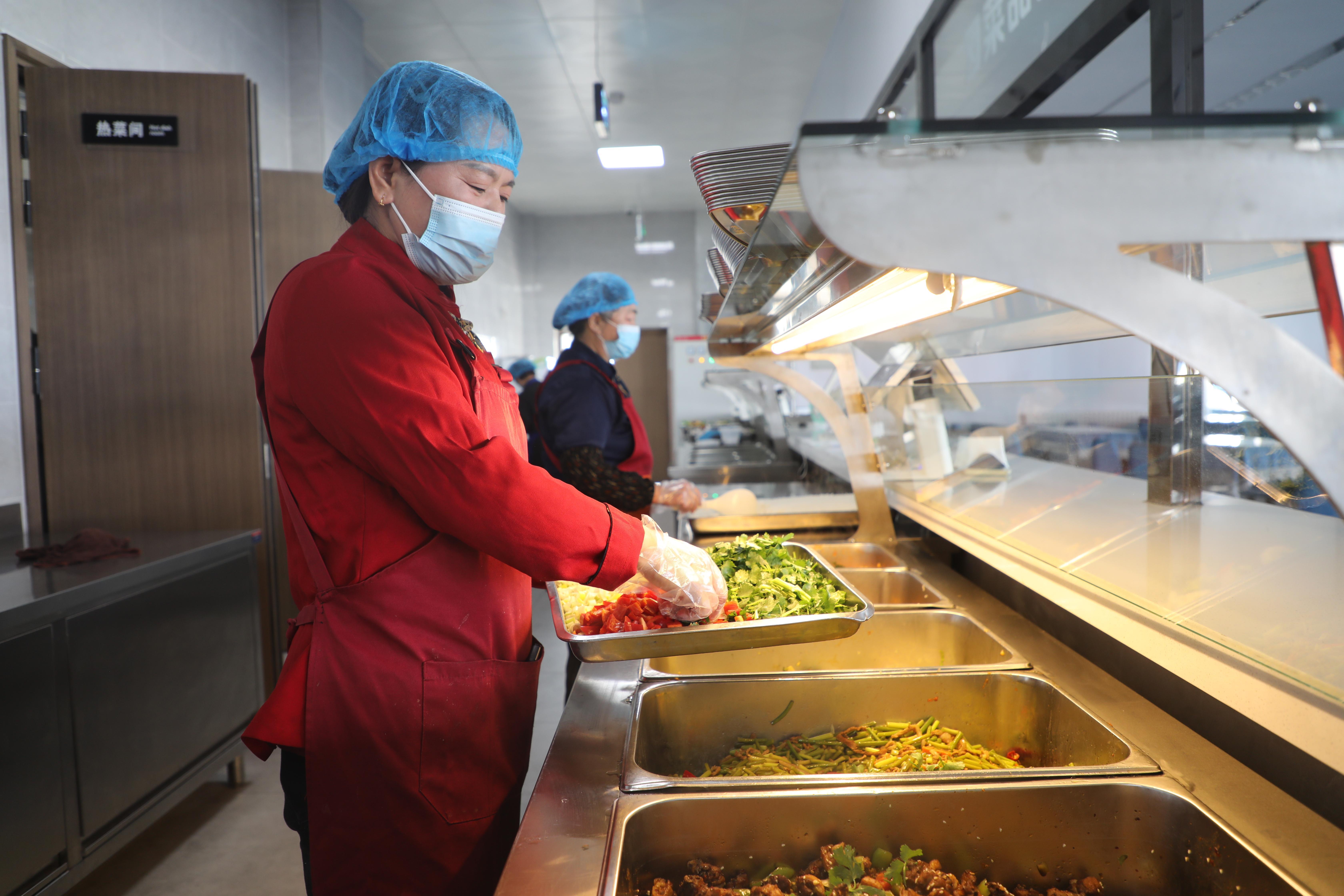 食堂工作人員為職工精心準(zhǔn)備午餐