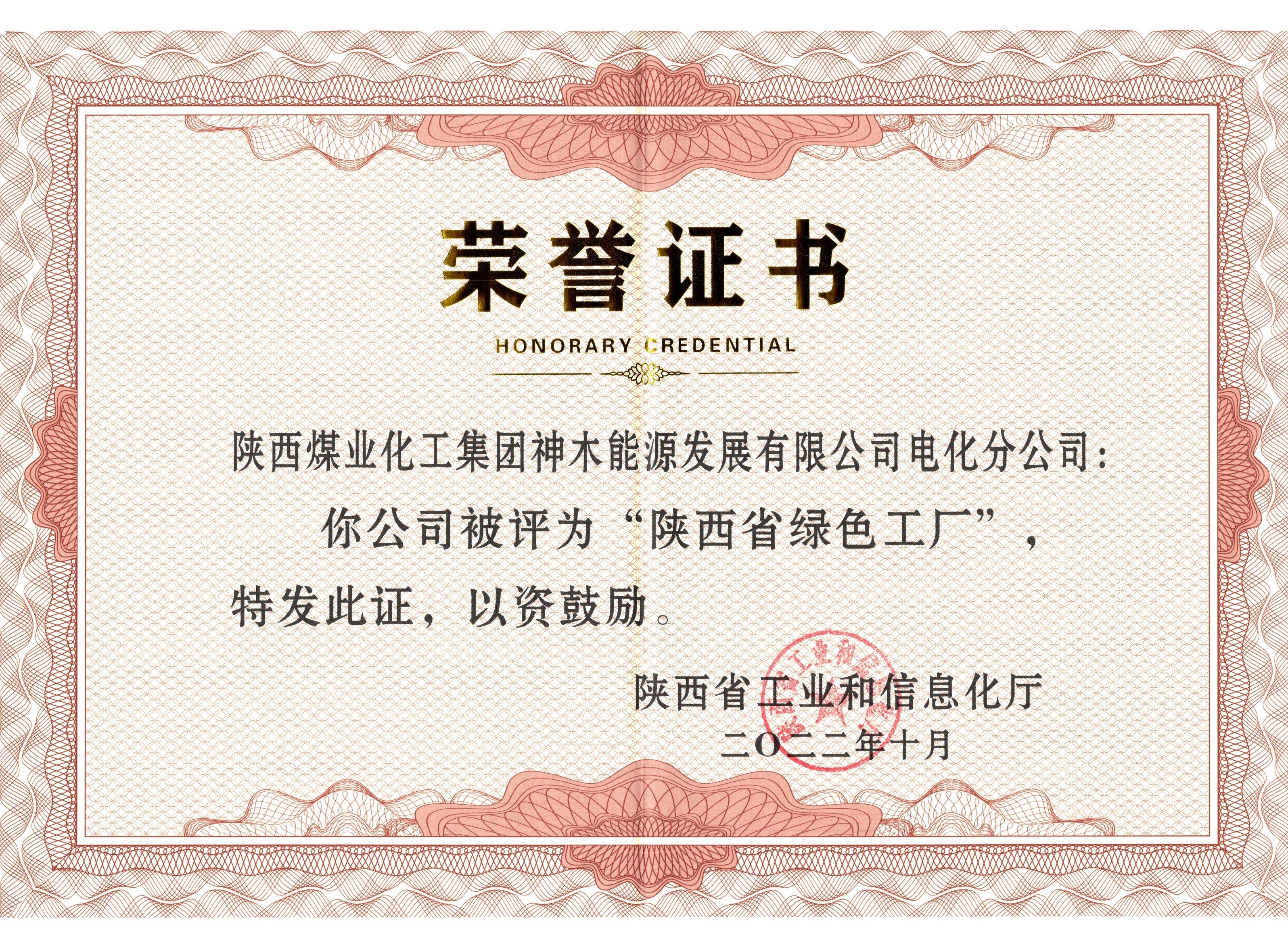 2022年9月14日,該公司成功入選《陜西省第三批綠色制造企業名單》,同年10月被陜西省工業和信息化廳評為陜西省綠色工廠。標志著該公司已實現“用地集約化、原料無害化、生產清潔化、廢物資源化、能源低碳化”的發展模式。