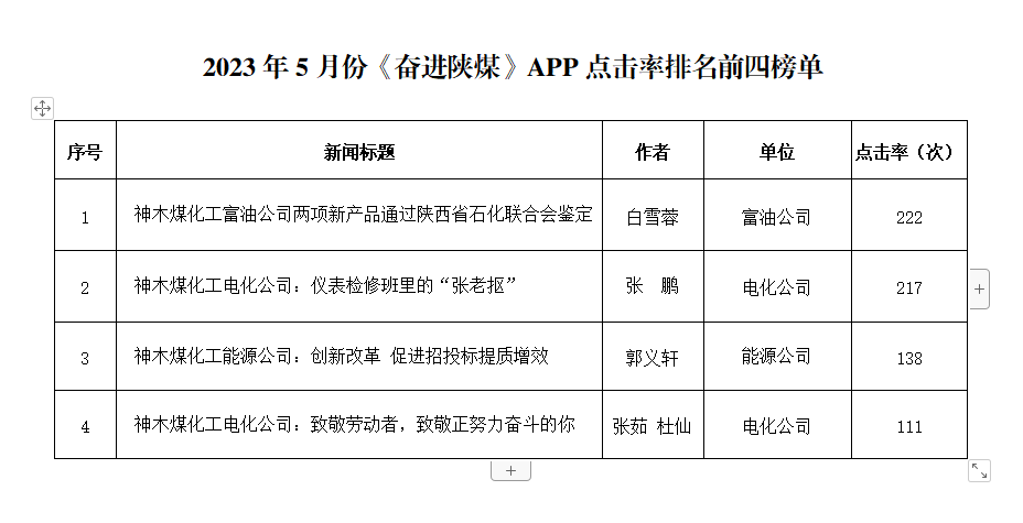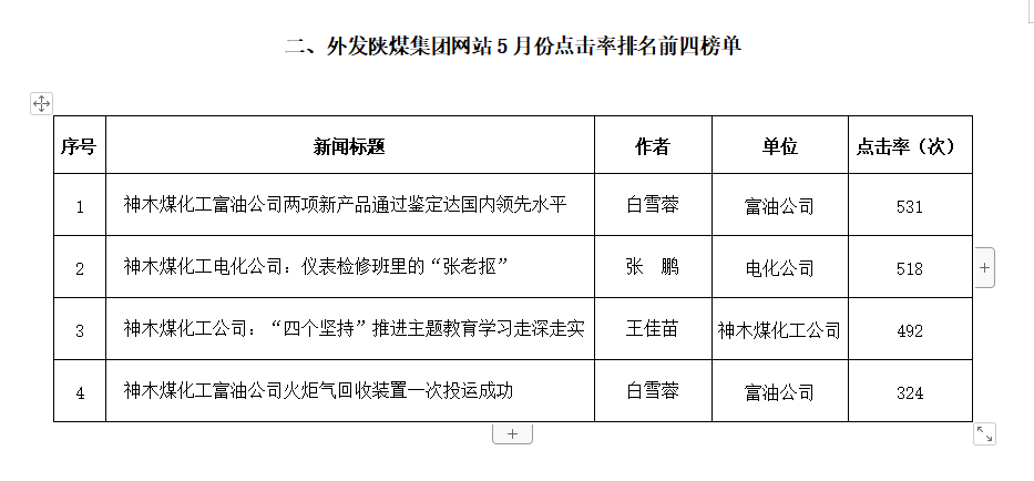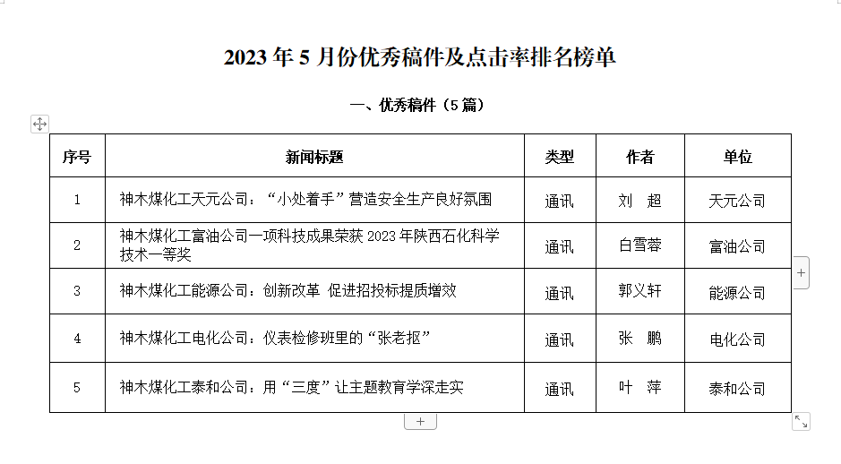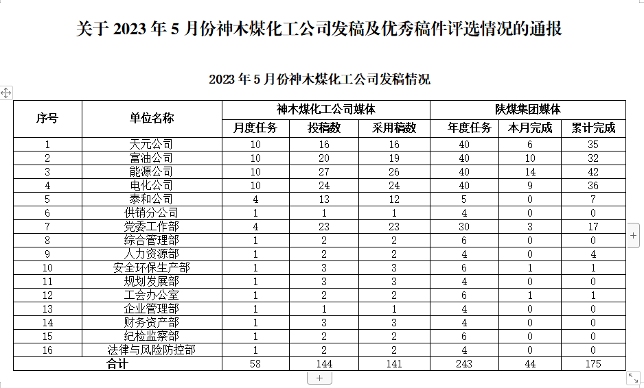 關于2023年5月份神木煤化工公司發稿及優秀稿件評選情況的通報