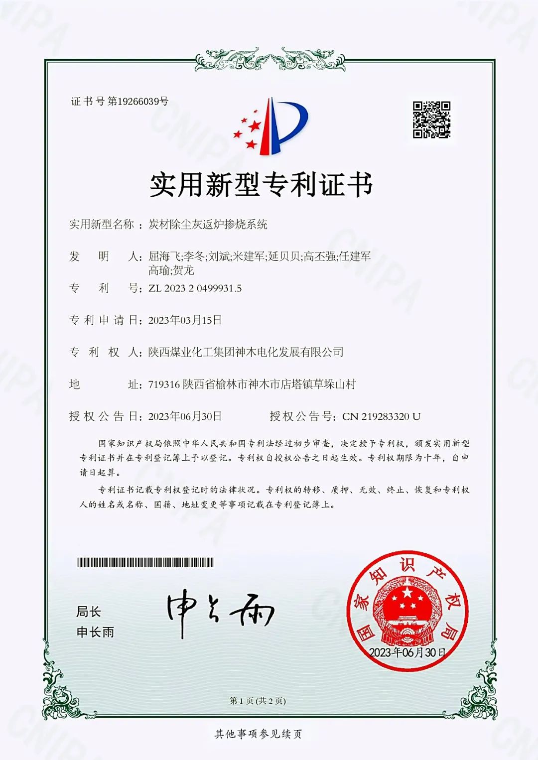 今年上半年,神木煤化工電化公司“電石爐電極升降控制系統”等5項技改項目獲得國家知識產權局實用新型5項專利授權。