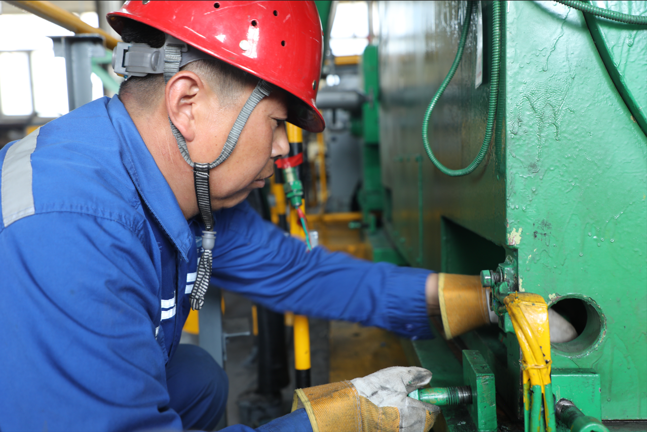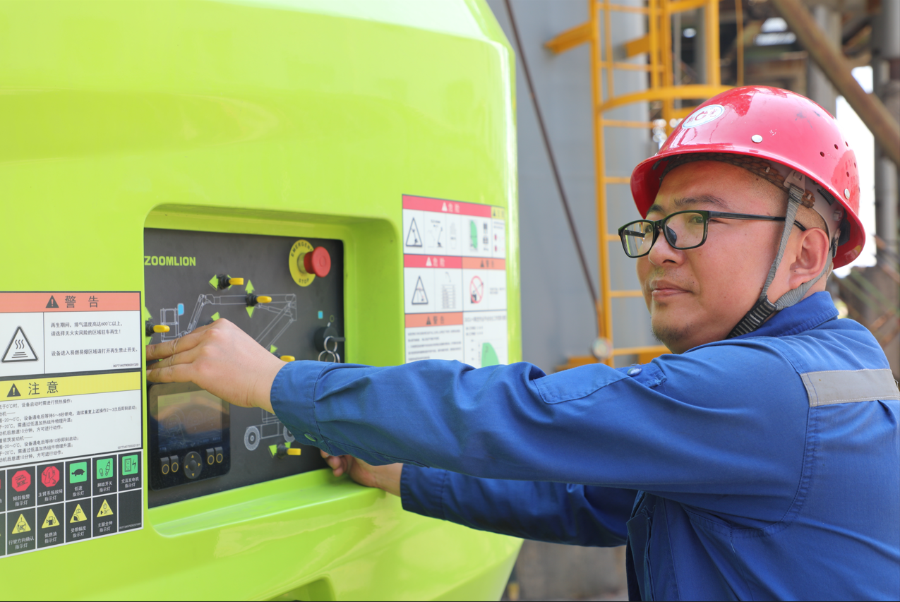 檢修車間預(yù)處理維護班馬悅在操作高空作業(yè)平臺