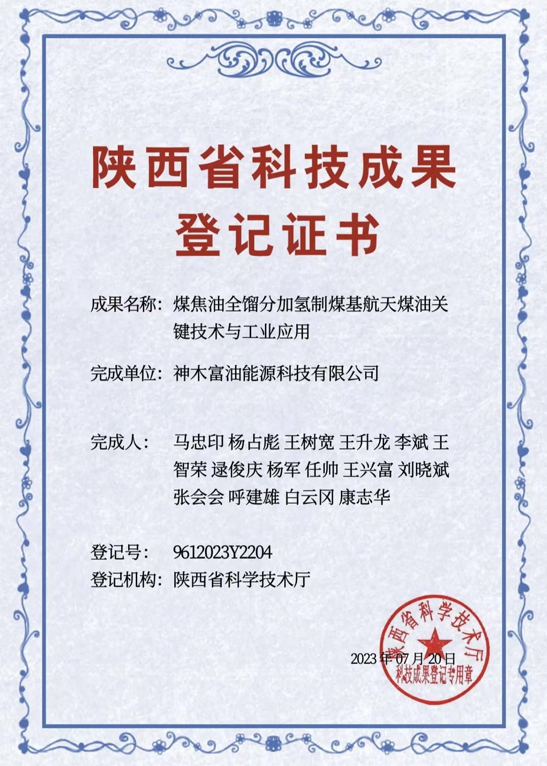 近日,神木煤化工富油公司兩個重點科技項目《中低溫煤焦油全餾分加氫制煤基航天煤油關(guān)鍵技術(shù)與工業(yè)應(yīng)用》《中低溫煤焦油全餾分加氫制特種柴油關(guān)鍵技術(shù)與工業(yè)應(yīng)用》獲得陜西省科學(xué)技術(shù)廳頒發(fā)的科技成果登記證書。
