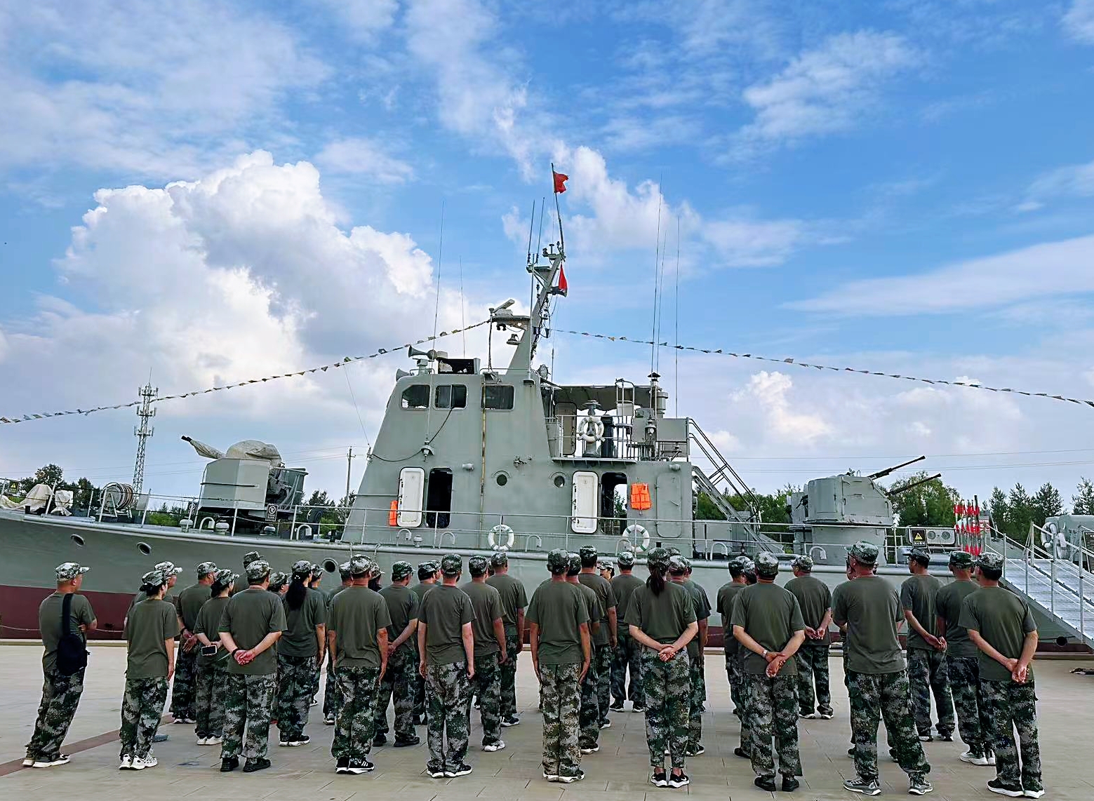 隨后,大家參觀了補(bǔ)浪河女子民兵治沙連展覽館,認(rèn)真聆聽了該連老一輩無產(chǎn)階級(jí)女前輩們?cè)衬⒘⒅局紊称D苦奮斗的歷史,學(xué)習(xí)了女子民兵治沙連“誓把黃沙變綠洲、定叫天地?fù)Q新顏”的精神。參觀了武器廣場(chǎng),登上退役的062-1型護(hù)衛(wèi)艇,對(duì)現(xiàn)代國防有了新的認(rèn)識(shí)。欣賞了花海美景,現(xiàn)場(chǎng)感受了沙漠到綠洲的巨大蛻變。