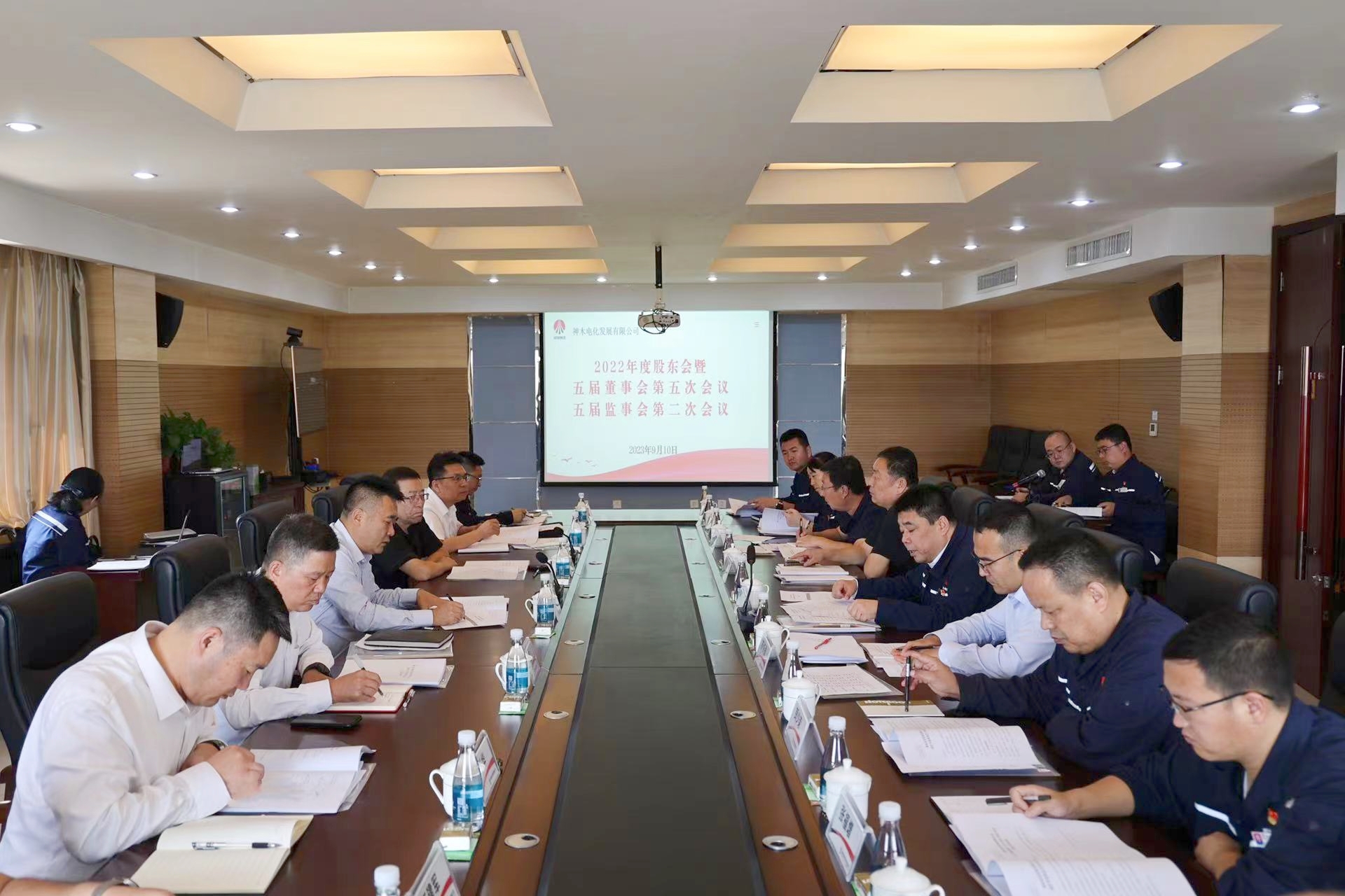9月10日,神木煤化工電化公司召開2022年度股東會暨五屆董事會第五次會議、五屆監事會第二次會議。神木煤化工公司黨委書記、董事長、總經理雷宏春,陜西神木煤電化資產運營有限公司法定代表人、電化公司監事會主席高會濤,電化公司董事、監事參加會議,其他班子成員列席會議。會議由電化公司黨委書記、董事長、總經理劉伏生主持。