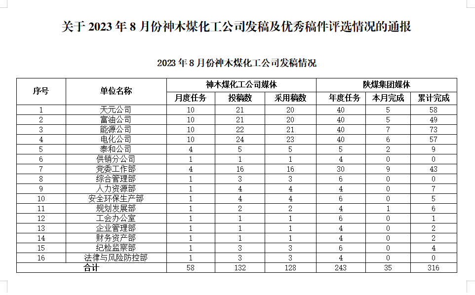 關(guān)于2023年8月份公司發(fā)稿及優(yōu)秀稿件評(píng)選情況的通報(bào)