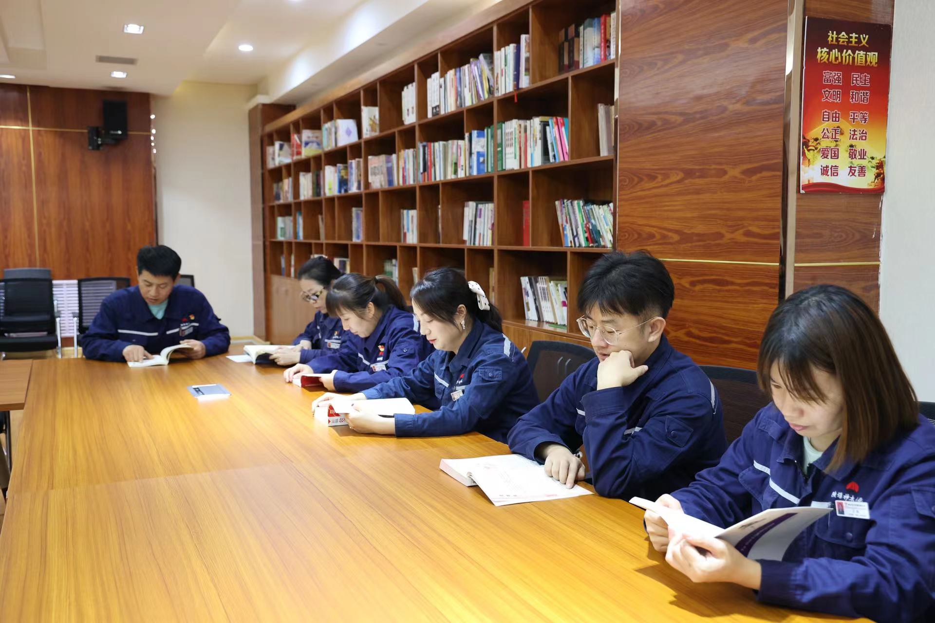 隨后,一行人來到神木職業技術學院圖書館開展讀書學習交流。在圖文信息處負責人的帶領下,先后參觀了圖書館的茶藝室、繪本室、剪紙展廳等功能區域,紛紛贊許圖書館溫馨、舒適的閱讀環境。在交流室,員工們集體學習了《工匠精神》,一起分享匠人精神的重要性。