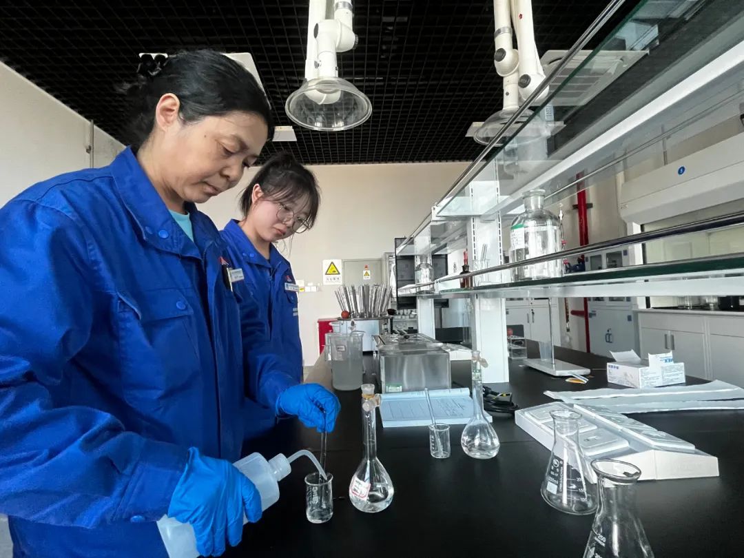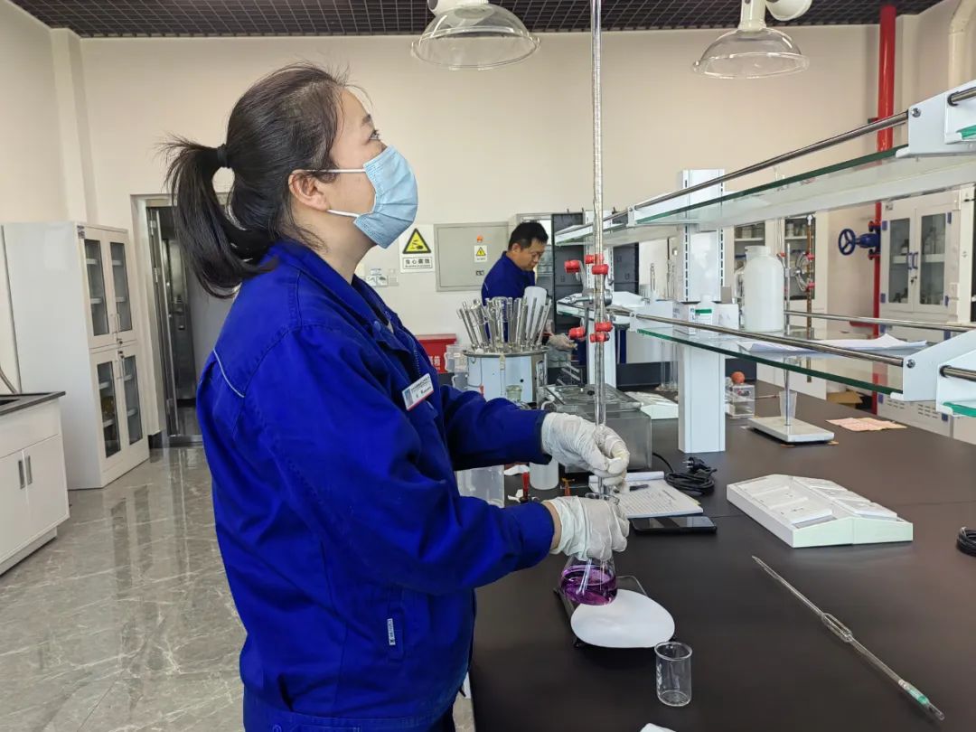 晶瑩透亮的實驗器具,沉著冷靜的參賽選手,一絲不茍的培訓老師,這5名化驗人員憑借高超的手藝匯集在這里,每天的備戰訓練緊張而充實,選手們相互交流,切磋技藝,取長補短,大家都感覺在這段時間里收獲頗豐。部門副主任工程師任綏成理論知識較豐富,他毫無保留地與大家共享自己積累的題庫,讓大家一同進步;有三十年分析經驗的老師傅馮芳翠主動擔任指導老師,在保證日常工作不受影響的前提下,利用下班時間,采取現場實際操作比武競賽的方式,組織大家開展EDTA滴定分析。