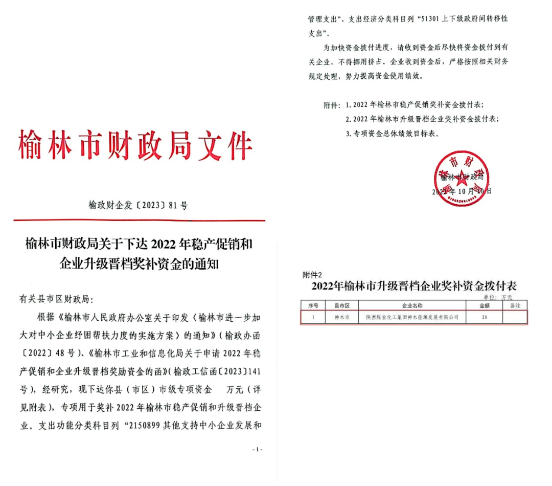 近日,從榆林市財(cái)政局文件《榆林市財(cái)政局關(guān)于下達(dá)2022年穩(wěn)產(chǎn)促銷和企業(yè)升級晉檔獎補(bǔ)資金的通知》獲悉,神木煤化工能源公司獲得2022年榆林市企業(yè)升級晉檔獎補(bǔ)資金20萬元。