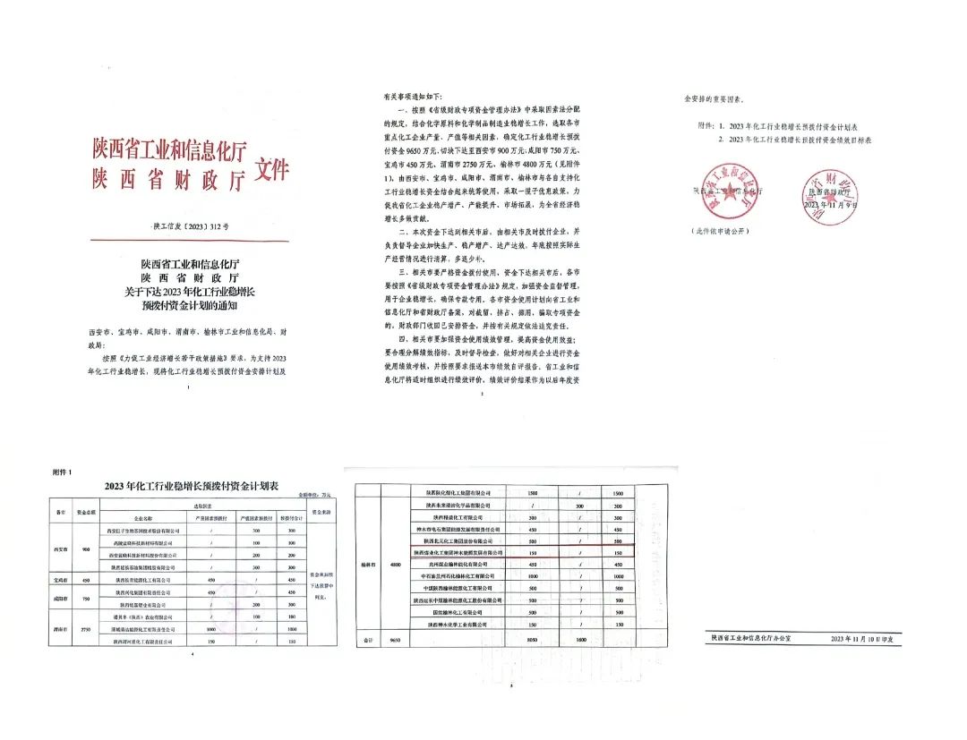 近日,從陜西省工業和信息化廳陜西省財政廳文件《陜西省工業和信息化廳陜西省財政廳關于下達2023年化工行業穩增長預撥付資金計劃的通知》獲悉,神木煤化工能源公司獲得陜西省2023年化工行業穩增長預撥付資金150萬元。