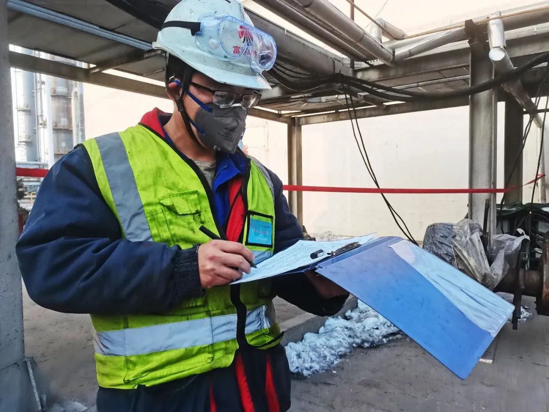 生產現場,巡檢員師凱毅身穿棉襖,頭頂安全帽,佩戴著測溫槍一邊工作,一邊介紹道:“平時在裝置區內巡回檢查,可以算是御寒的法寶,不過今年的氣溫格外低,在室外巡檢,還是會冷的打哆嗦。”他迎著寒風,按照巡檢路線往前走,每到一處巡檢點,他都會停下來繞著設備對聲音、溫度、氣味進行一一排查。巡檢完壓縮機區域,師凱毅還精神飽滿,他分享道:“汽輪機是FTH中心裝置的核心設備,如果某一環節出現問題就會直接影響生產運行,尤其要注意汽輪機的溫度、振動情況,不得有半點馬虎。”師凱毅依次巡檢完高壓換熱器區、反應器區域等所有巡檢點,確保運行正常,才回到外操室。在寒冬里,正是有了這些不畏嚴寒、勇往直前的“巡邏兵”,才使公司系統安穩運行有了保障。