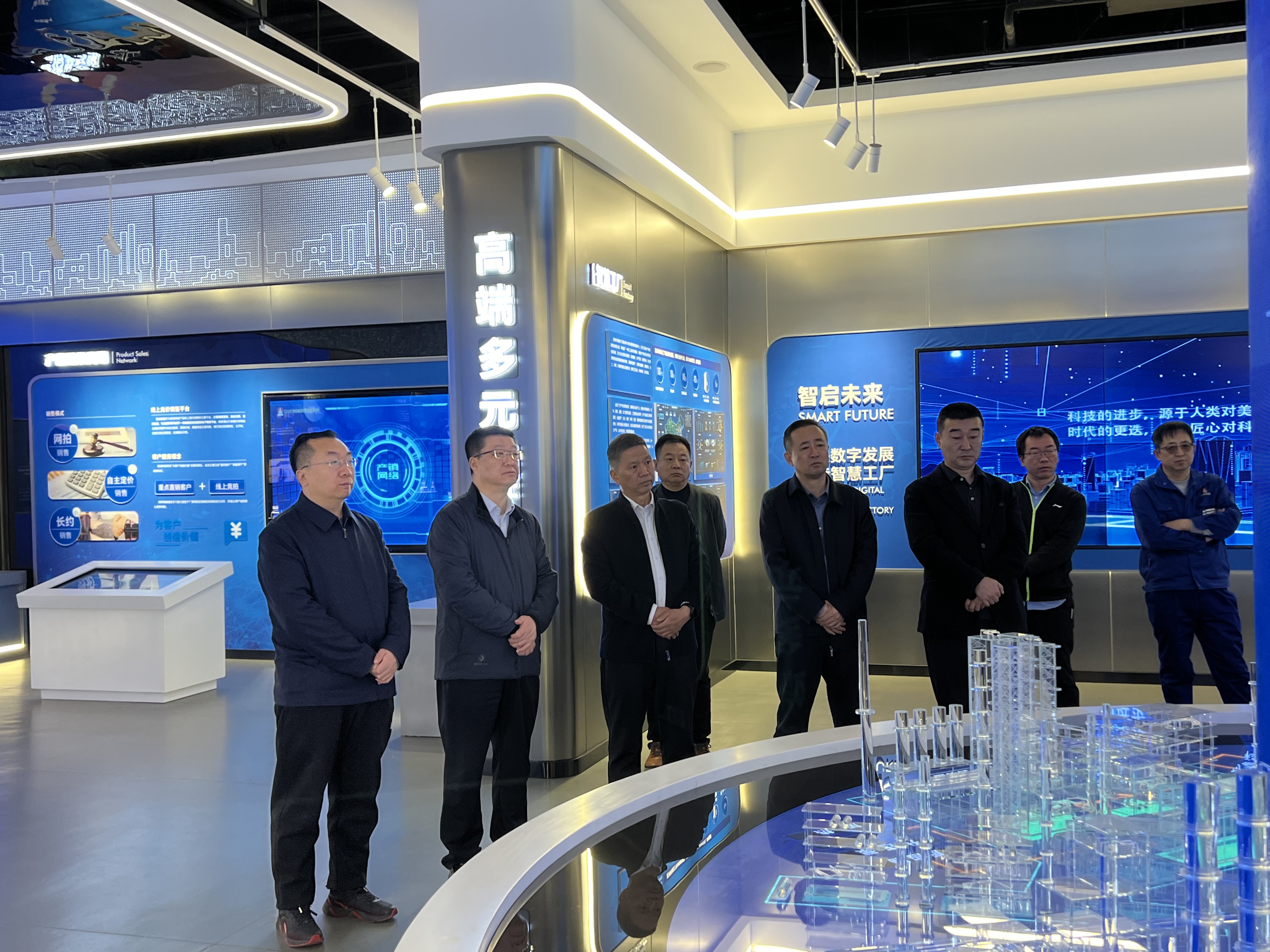 于海濱一行先后參觀了富油公司文化展廳、50萬噸/年煤焦油全餾分加氫制環烷基特種油品成套工業化裝置,天元公司135萬噸/年蘭炭升級改造項目現場、中心控制室,詳細了解了神木煤化工公司發展歷程、核心工藝、技術優勢、產品特色、企業文化等。