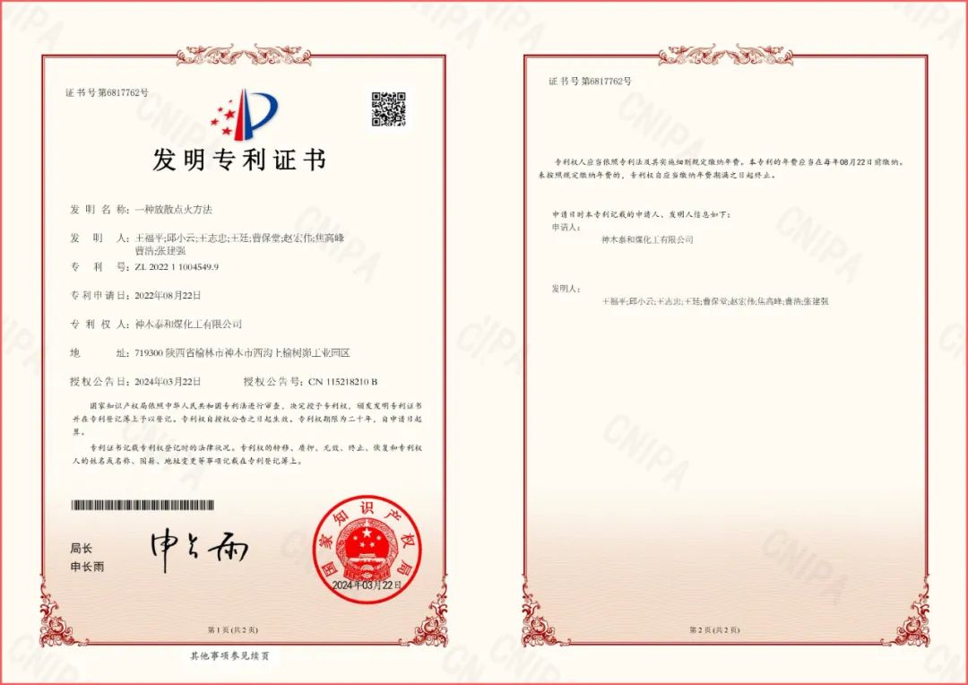 近日,神木煤化工泰和公司申請(qǐng)的發(fā)明專利“一種放散點(diǎn)火方法”成功獲得國家知識(shí)產(chǎn)權(quán)局授權(quán)。此項(xiàng)發(fā)明專利成功解決了蘭炭行業(yè)煤氣應(yīng)急放散點(diǎn)火難題。