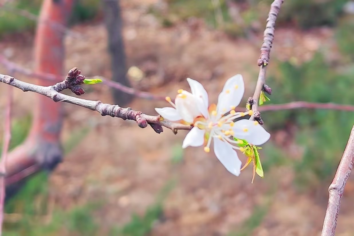 一晃人間又一春,淺聽和風喃喃語。告我如今,告我如今,草也青青,木也欣欣,枝頭望去桃花嬌艷。
