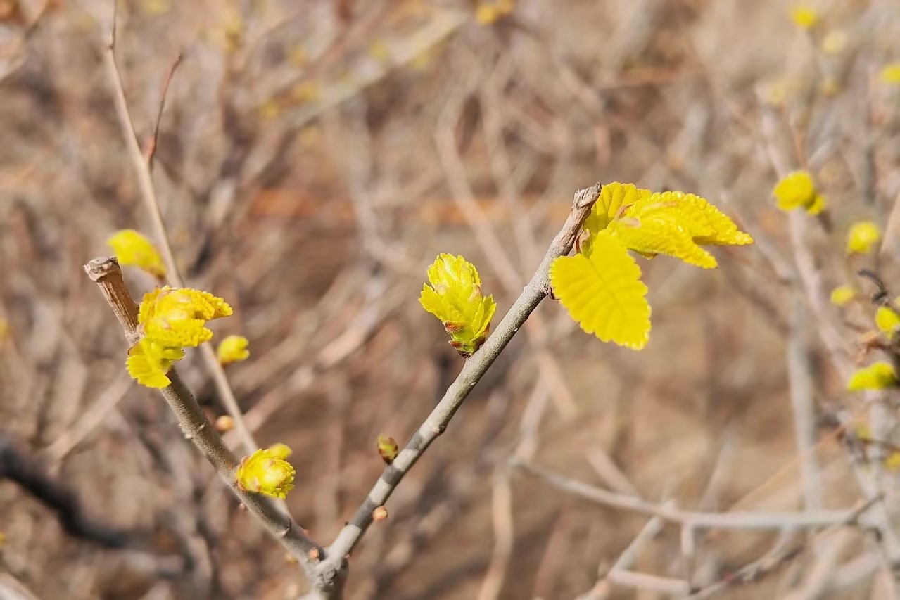 晨觀細雨落春枝,柳輕舒,燕嬌呼,報春遲,粉桃含苞怒。見伊笑,眼漸蘇,簇簇含羞綻,一如她心意,寸寸隨春染