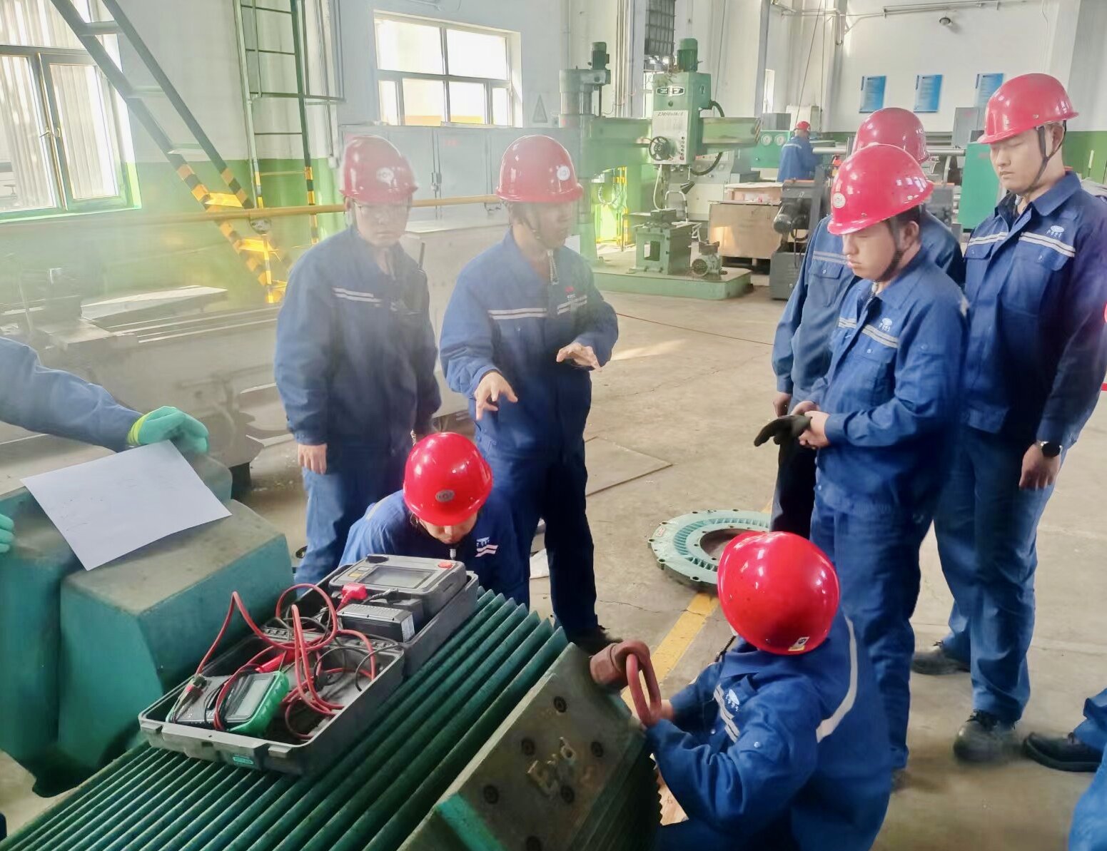 此外,電氣專業主管主任充分利用此次檢修的便利條件,以“實地授課”的形式,在現場邊操作邊講解10KV高壓電動機的結構原理、電動機繞組受潮的故障原因、拆解、安裝和調試等工作,切實提升新職工分析、解決問題的能力。