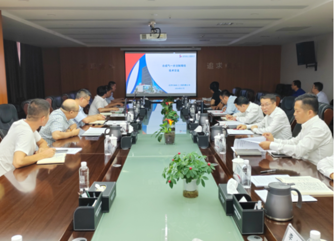 7月17日,北京石油化工工程有限公司副總經(jīng)理楊礫一行6人到公司進行合成氣一步法制烯烴技術(shù)交流。公司黨委副書記、總經(jīng)理辛文輝,黨委委員、副總經(jīng)理馬忠印,生產(chǎn)環(huán)保規(guī)劃部、天元公司、富油公司、東鑫垣公司相關(guān)負責(zé)人參加會議。