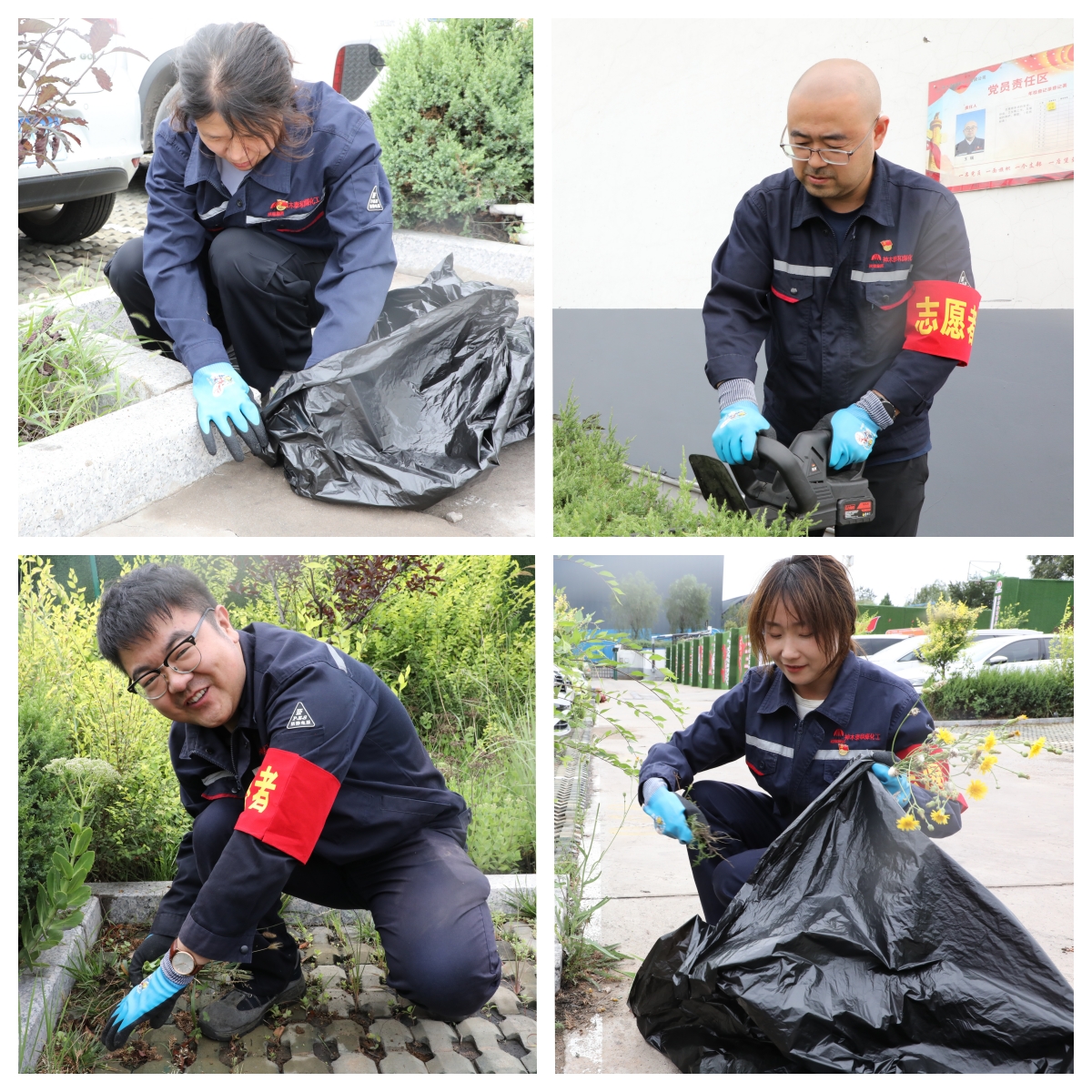 活動中,黨員志愿者們充分發揚不怕苦、不怕累、不怕臟的精神,分工協作,迅速投入到清除雜草隊伍里,化身為“除草能手”。經過2個小時的辛勤勞動,原本雜草叢生的區域煥然一新,展現出整潔、清爽的新面貌。