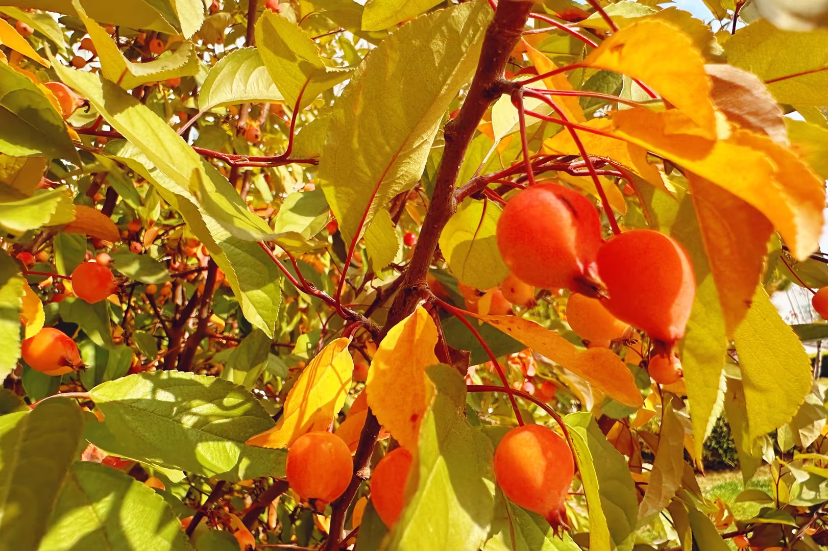 海紅果實正艷 老菊口含新露
