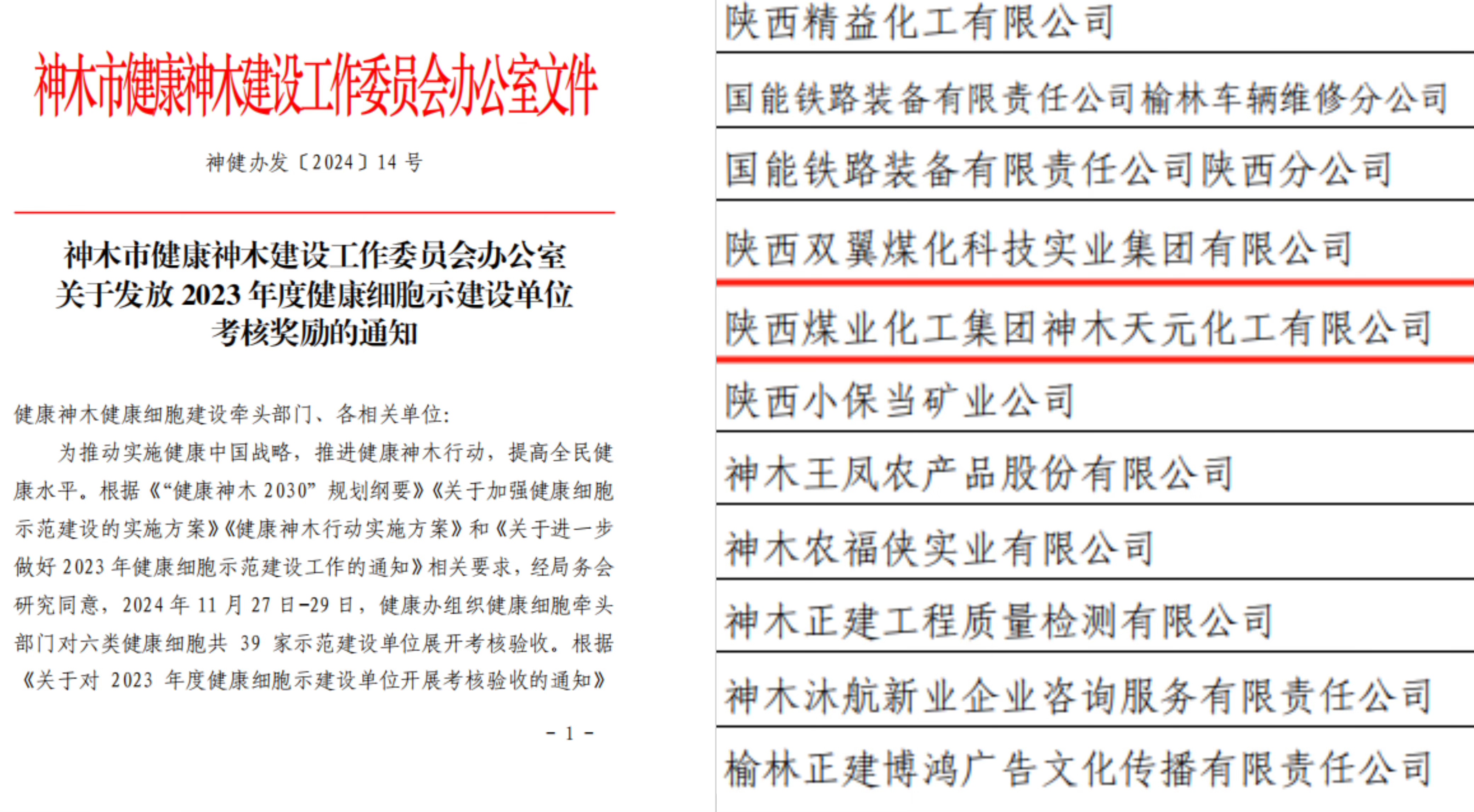 此項榮譽是對公司健康細胞建設的高度認可,公司將以此為契機,進一步優化工作環境,不斷完善健康管理體系,提升健康管理和服務水平,為公司健康安全發展保駕護航,為推進“健康神木”建設做出積極貢獻。(崔瑩)