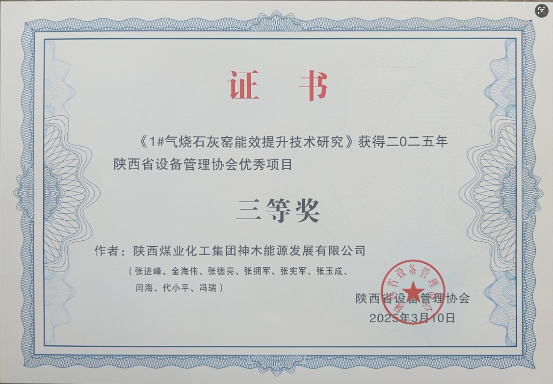 近日,2025年陜西省設備管理協會優秀項目評選結果正式揭曉,神木煤化工公司申報的《脫硫包裝系統智慧化升級改造》項目榮獲一等獎,《1#氣燒石灰窯能效提升技術研究》和《鍋爐智能優化控制技術應用》項目榮獲三等獎,《反滲透外排水回收改造》項目榮獲優秀獎。