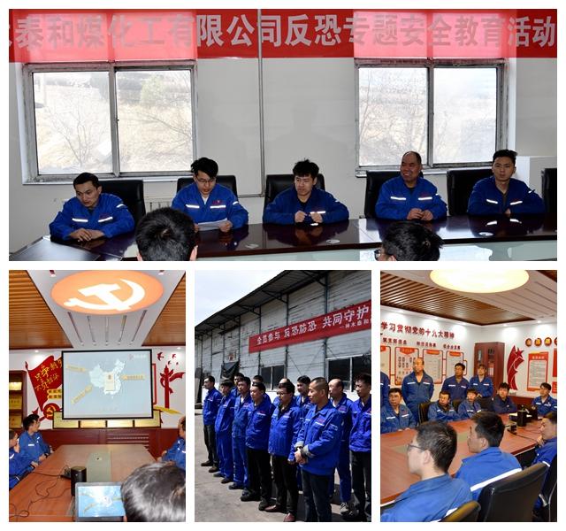 泰和公司在生活區域及生產區域張貼“加強反恐安全教育,增強反恐安全意識”等反恐防暴橫幅,增強反恐防暴人人有責的意識;舉行了反恐防暴安全專題培訓會,對反恐安全知識進行了宣貫,讓大家充分掌握反恐基本知識、反恐防暴應急能力;觀看了反恐防暴安全知識視頻,進一步增強了大家反恐防暴意識;廣泛宣傳反恐應對措施、自救方法以及反恐技巧等,促使廣大職工增強安全防范意識,落實防范應急措施,確保職工生命財產安全和公司生產經營安全有序進行。