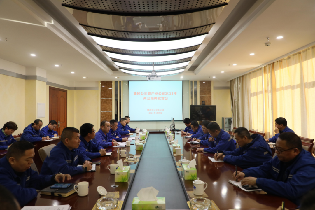 1月5日,天元公司召開會議傳達學習集團公司二屆五次職代會暨2021年工作會和神木煤化工“三會”精神,天元公司領導班子成員,各車間、部辦負責人參加會議。