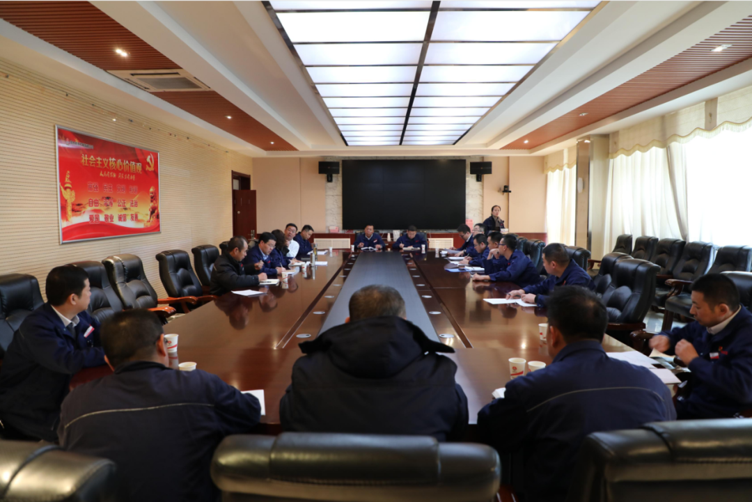 12月29日,電化公司在二樓會議室召開會議,傳達學習神木煤化工二屆五次職代會暨2021年工作會、安全工作會會議精神。電化公司領導、各部室分廠負責人參加學習。