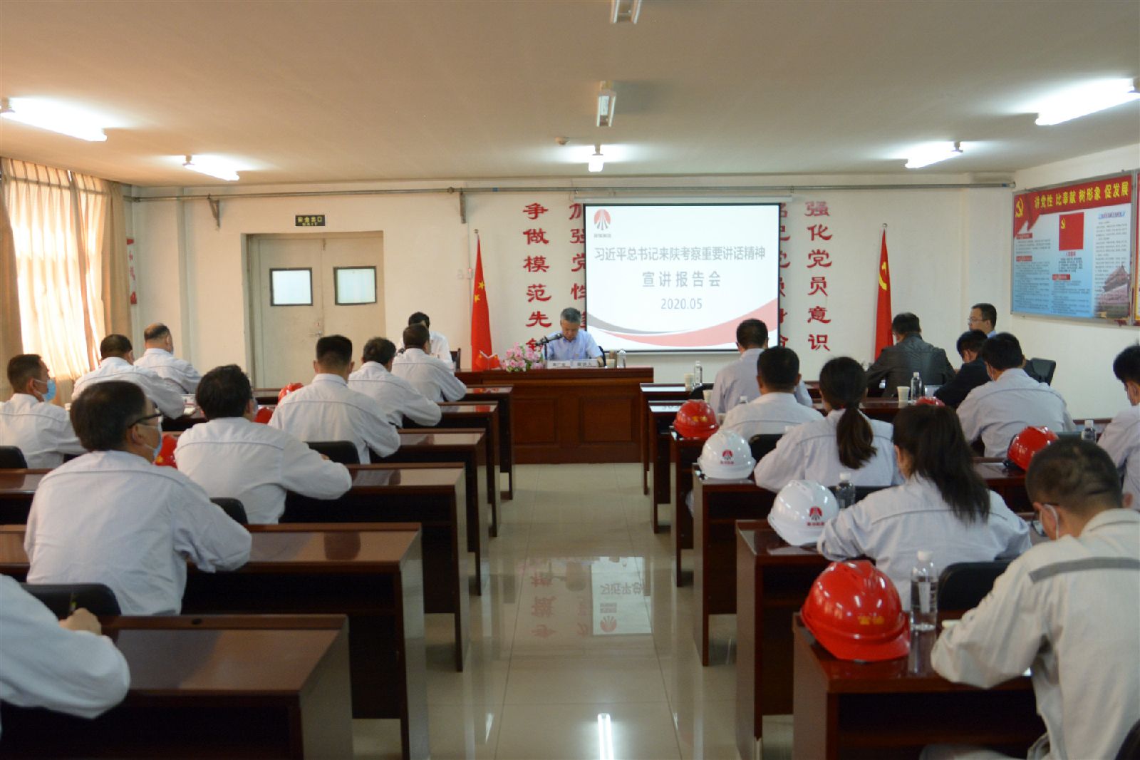 袁廣金強調,學習宣傳貫徹習近平總書記來陜考察重要講話精神,是陜煤集團當前和今后一個時期的重要政治任務,鼓勵廣大黨員干部在學深悟透、融會貫通、真悟篤行上下功夫,學懂弄通用活總書記重要講話精神,立足本職工作,積極做好 “六穩“ “六保”工作任務。他指出,神木煤化工科技成果碩果累累,成果轉化也取得了較好的成績。他鼓勵神木煤化工要繼續加強科技研發力度,發揮好混合所有制企業優勢,持續做好產業鏈延伸,積極發展固廢利用產業,加強廢水、廢氣的綜合治理和資源清潔利用,為實現陜煤“16555”的高質量發展目標貢獻神木煤化工力量。