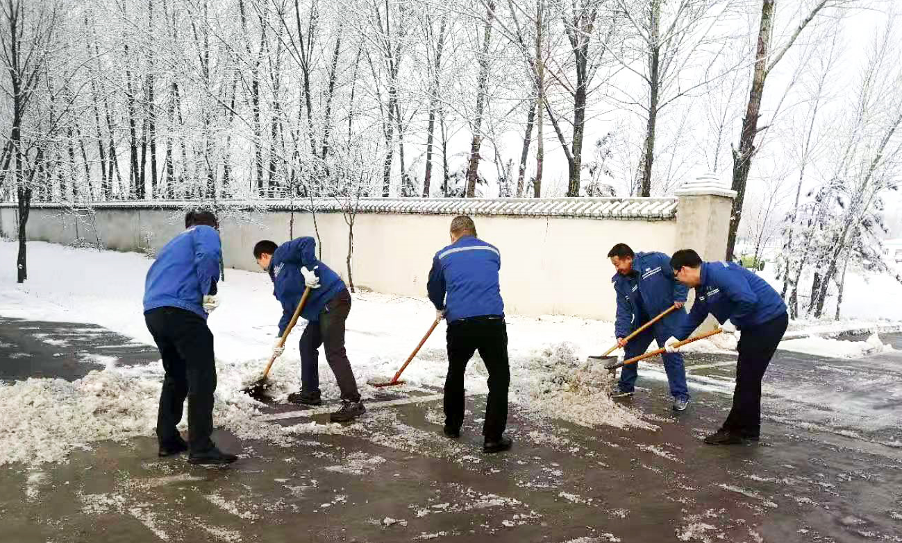 早上8時,大家不畏嚴寒,陸續加入到清理積雪的隊伍中來。在該公司生產第一黨支部包聯領導、公司黨委副書記、總經理李秀輝同志帶領下,全體黨員干部及公司值班人員頂著嚴寒、揮舞著鐵鍬開始對生產辦公樓前以及附近道路上的積雪進行清掃。大家齊心協力,配合默契,鏟的鏟、推的推、掃的掃,干得熱火朝天,不亦樂乎,忙碌的身影構成了一道亮麗的風景線。