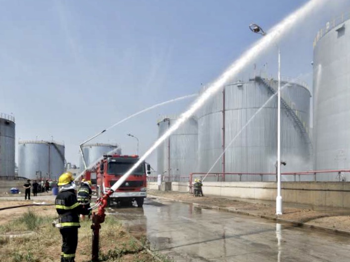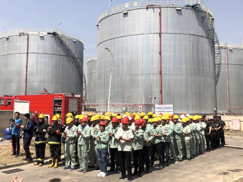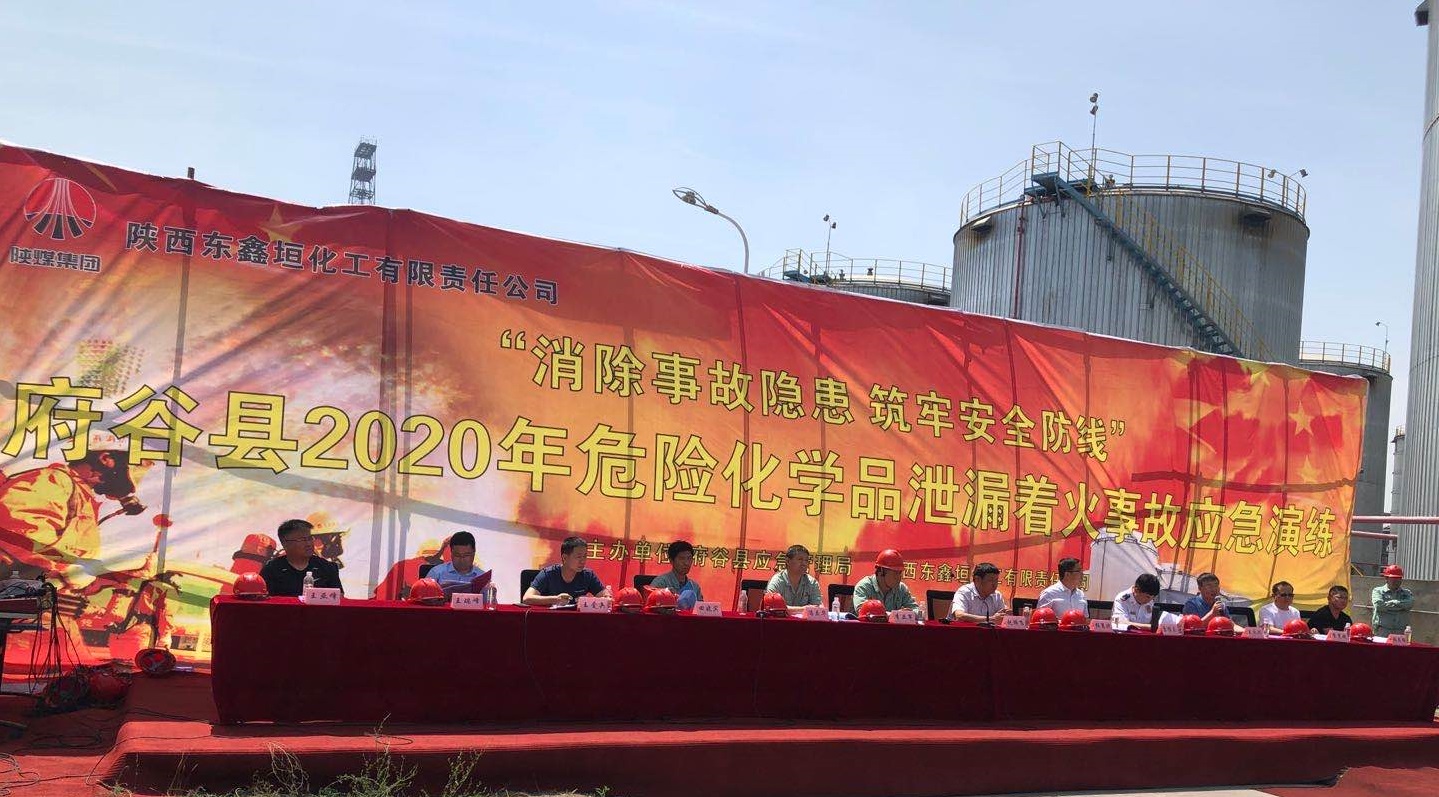 今年六月是全國第19個安全生產月,按照東鑫垣公司安全生產月統一部署,6月12日上午,府谷縣應急管理局和該公司聯合主辦的儲油罐區T-54206油罐泄漏著火事故應急演練在該公司制油分廠成品油罐區開展。府谷縣應急管理局、廟溝門鎮人民政府、該公司相關部門人員等100余人參加演練。