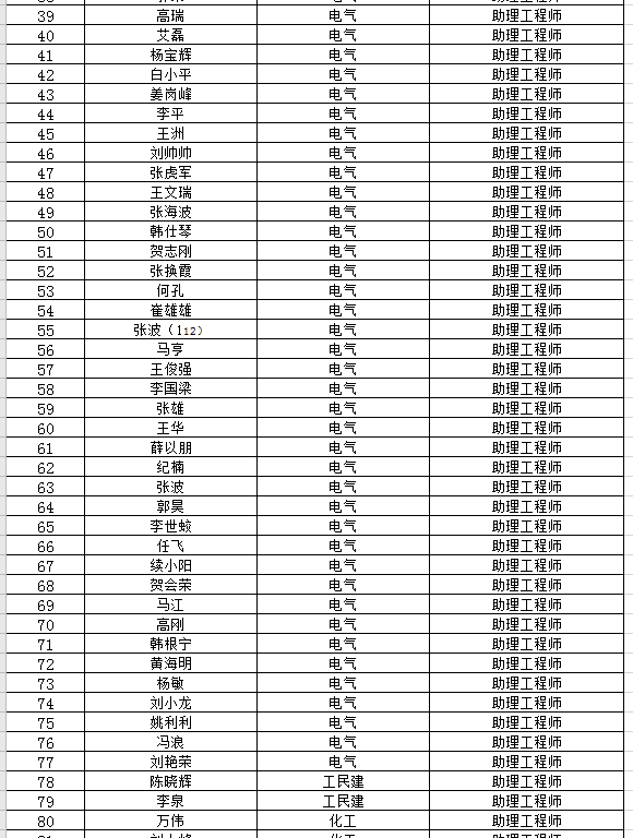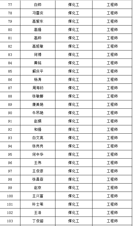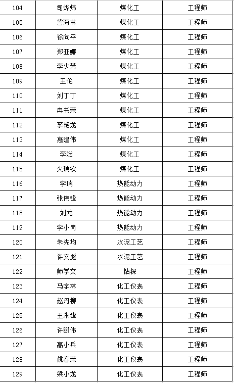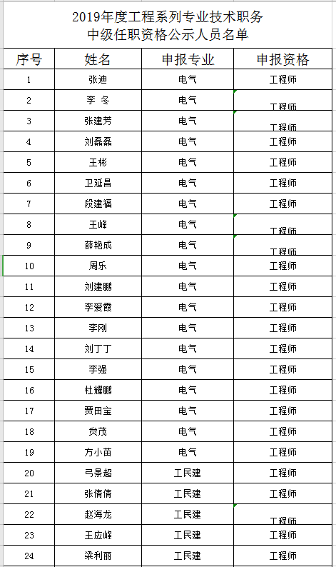 經公司工程系列專業技術職務中級任職資格評審委員會2020年1月11日評審會議表決,2019年度工程系列專業技術職務初中級任職資格共408人通過認定、評審(其中:初級279人,中級129人),現將認定、評審通過人員名單公示如下: