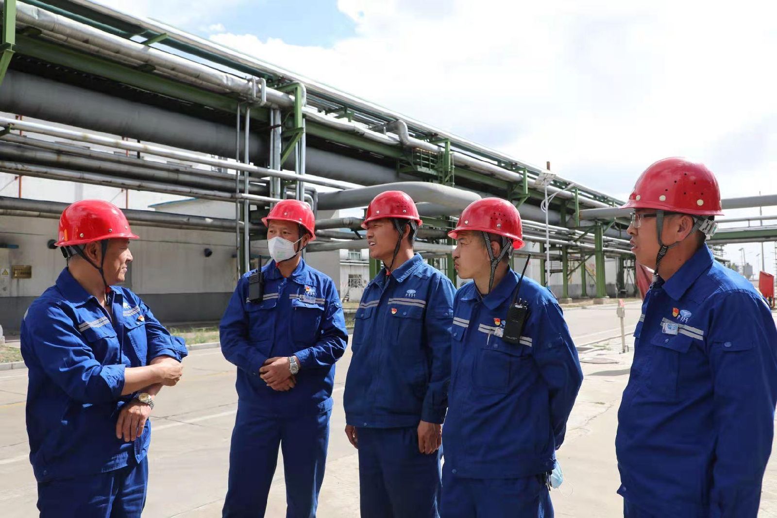 在一段反應器現場,他們群策群力,研究高壓換熱器E11102B更換、焊接方案。